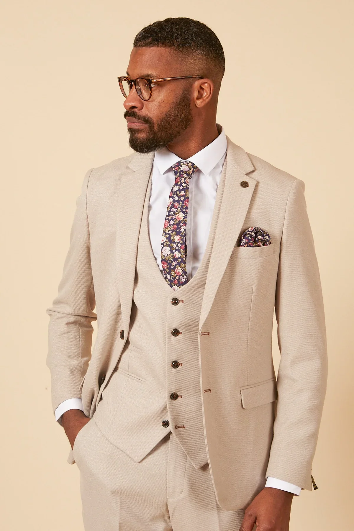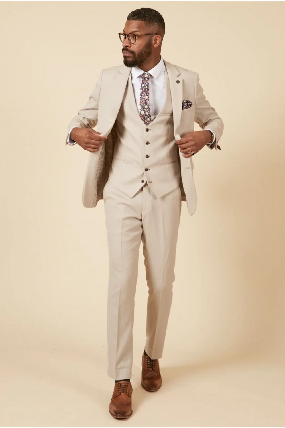 Dit HM5 Stone driedelig pak van Marc Darcy is een ode aan zomerse elegantie. Je draagt het niet, je beleeft het. Je voelt de lichte stof als een tweede huid. Je ziet de bewonderende blikken – niet opdringerig, maar vol respect. Dit is stijl die niet te koop is, maar die je wél kunt dragen.