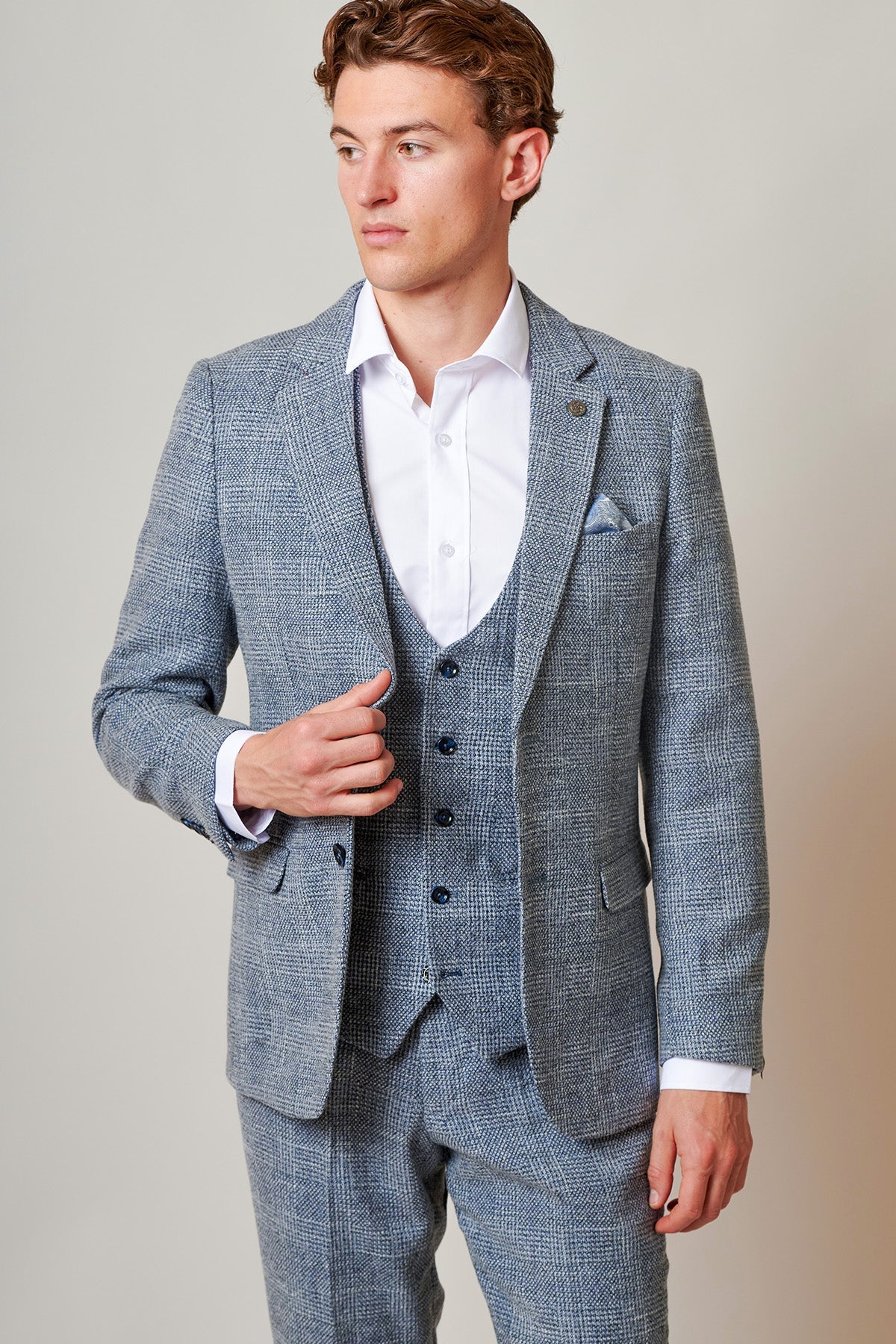 3-delig Tweed Kostuum – Marc Darcy Kris Sky Blue