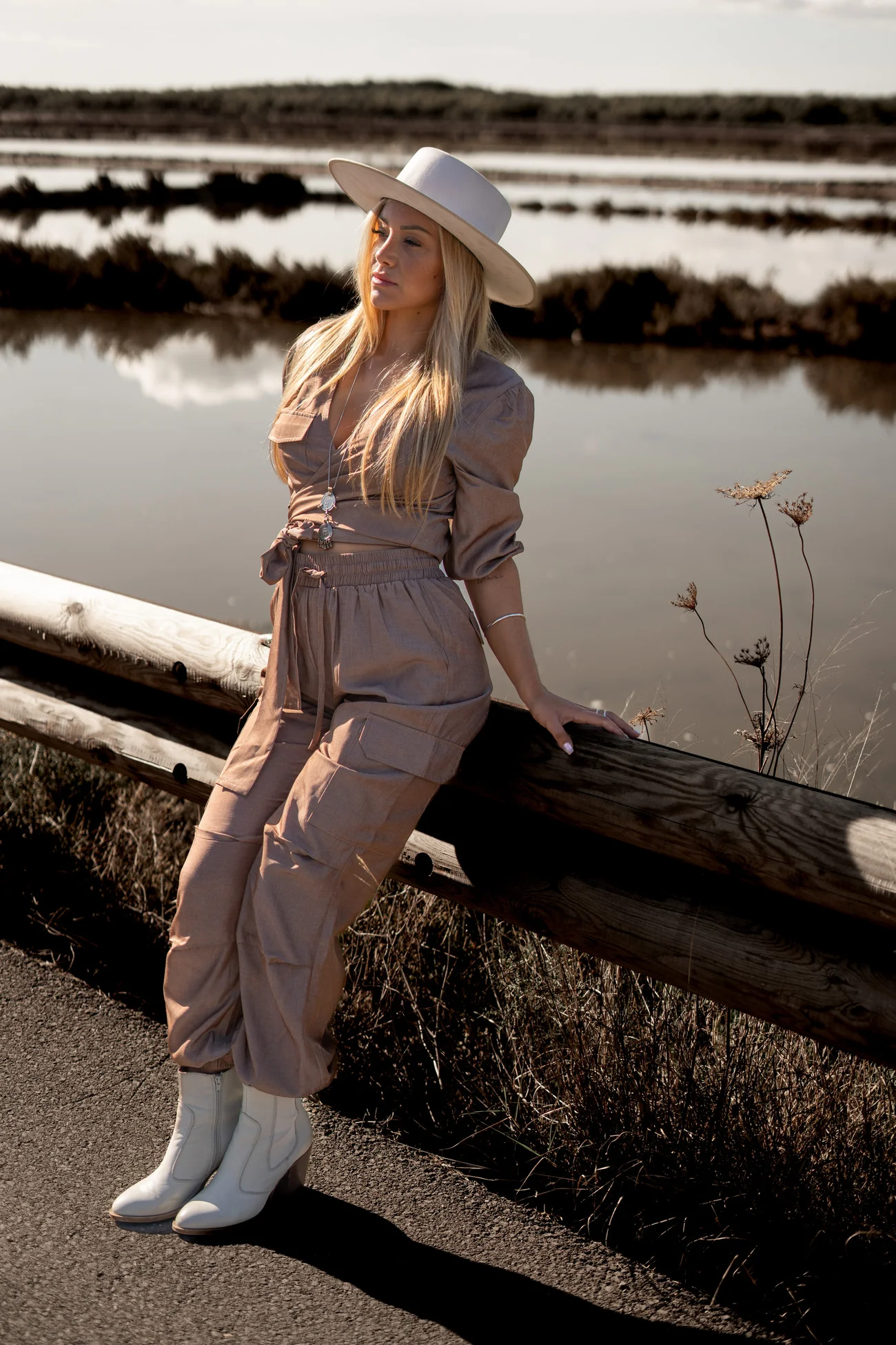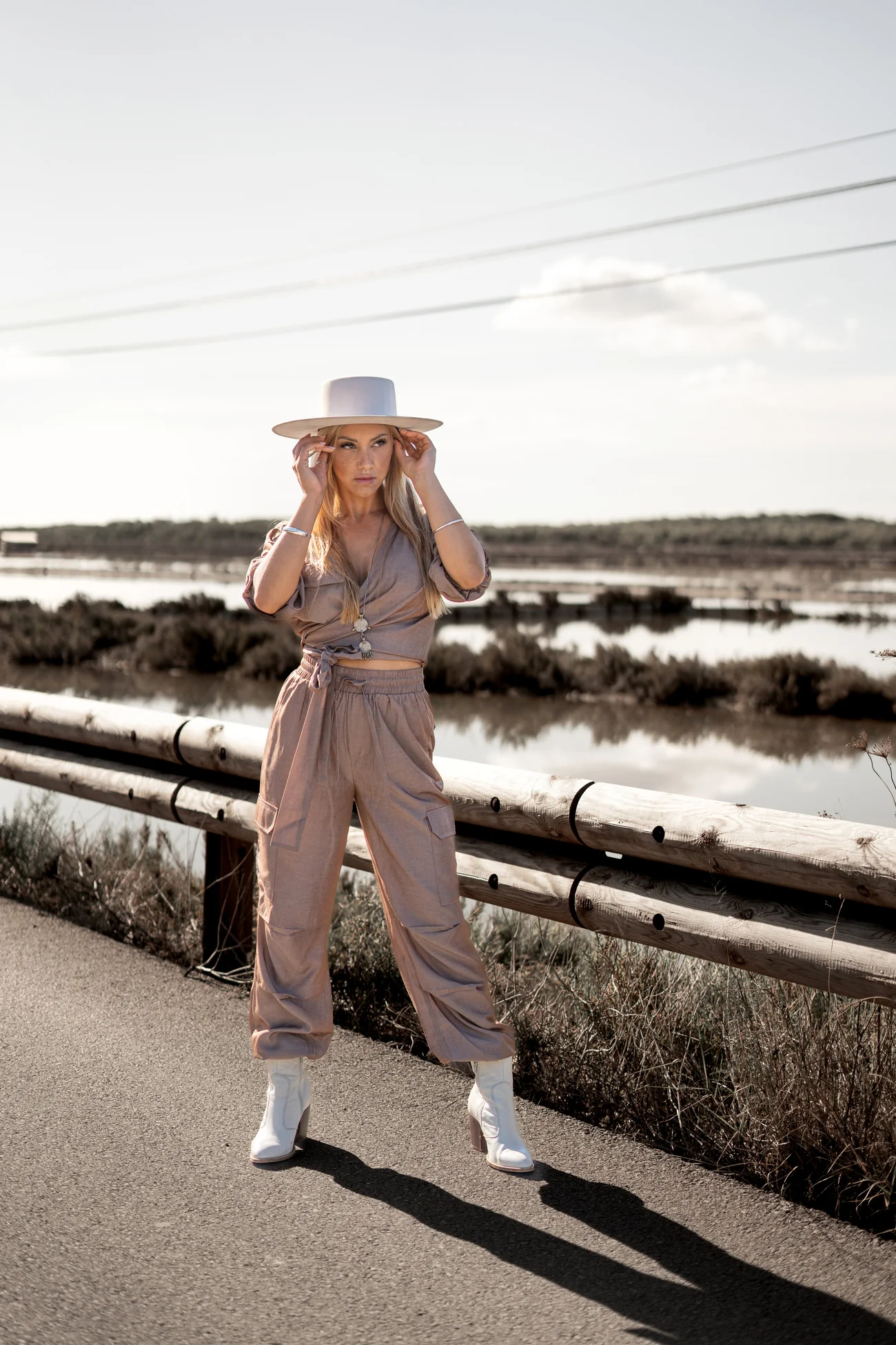 Deze Alyssa cargo pants Taupe van MOOST Wanted in het taupe ademt Ibiza vibes. Cargobroek met elastische tailleband en steekzakken, comfortabele en rekbare viscosemix, leuk in com Laat de zomer maar komen – jij bent er klaar voor.