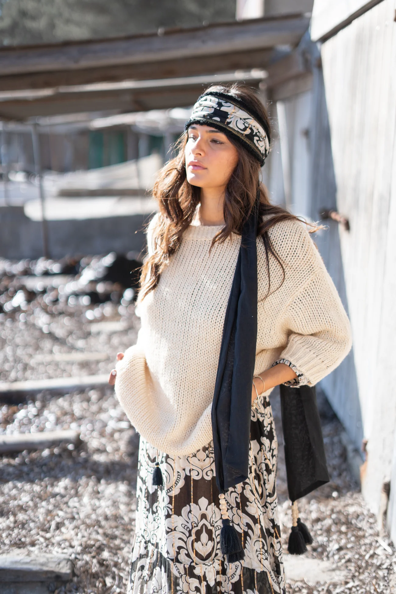Op zoek naar een item met bohemian flair? Dan is de Belt Ese Baroque Black Baroque van ibzmode jouw match. Een brede band met barok print, bewerkt gouden lurex garen Het natuurlijke materiaal zorgt voor een luchtige feel. Voeg deze must-have toe aan je zomergarderobe.