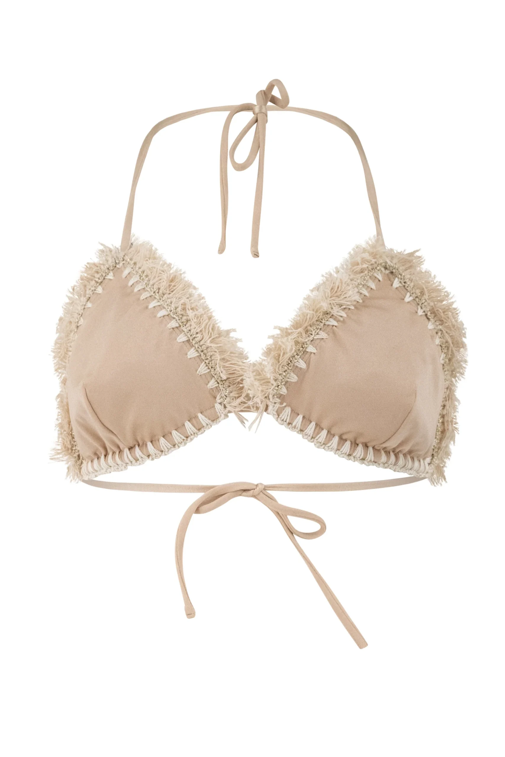 Vakantiegevoel verzekerd met de Bikini Top Luna Sol Sand. Gemaakt van 80% nylon, 20% lycra in de kleur sand. Draag met een transparante tuniek en sandalen op een zomerse dag. Bestel direct en geniet van zon, zee en stijl.