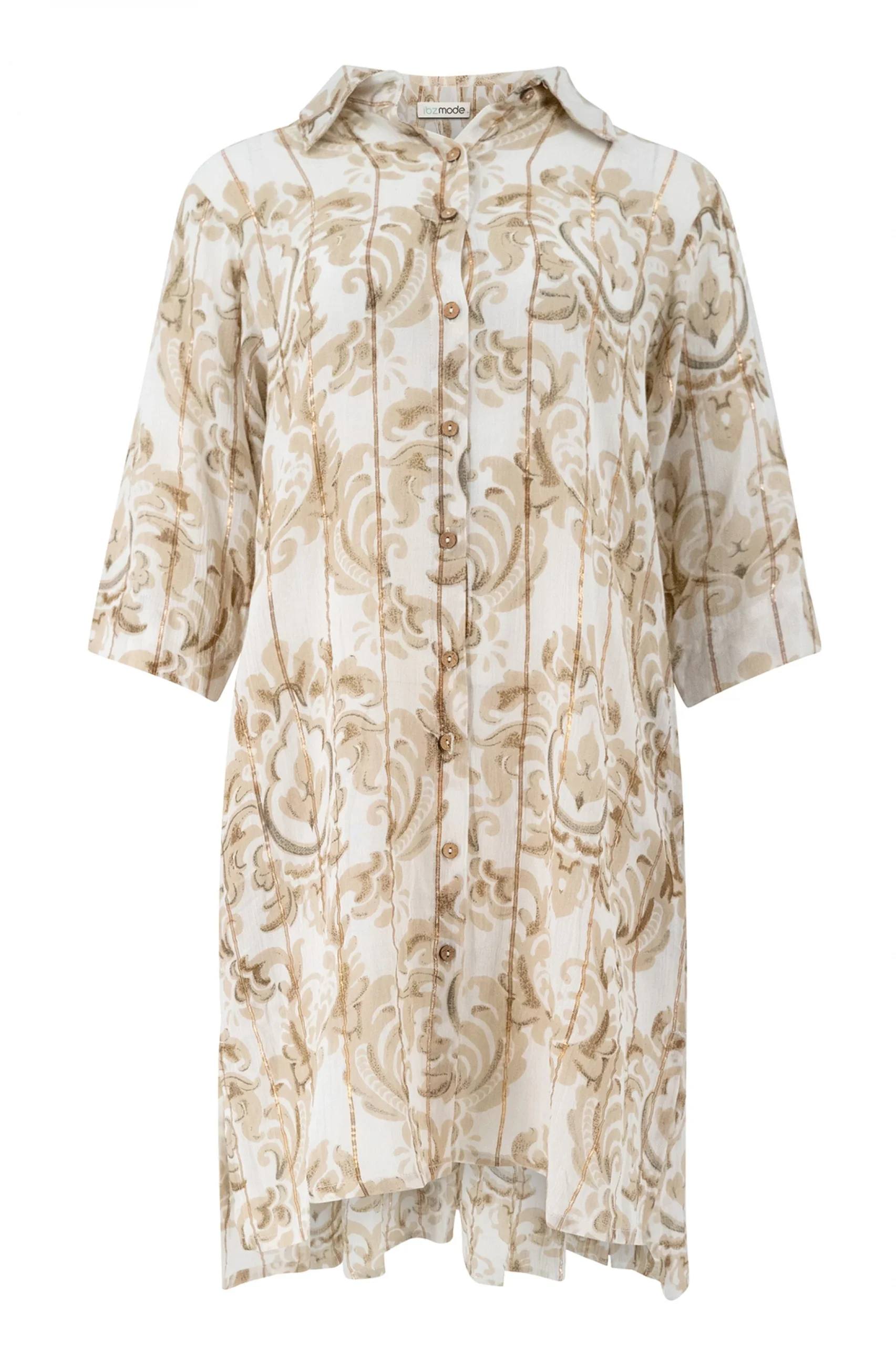 Deze Blouse Aletta Baroque White Print van ibzmode in het white ademt Ibiza vibes. Heeft een kraagje, knoopjes, lurex garen door de stof, draagt luchtig Let op: Je koopt de kleur van Gemaakt van 98% rayon, 2% lurex, licht en comfortabel voor warme dagen. Laat de zomer maar komen – jij bent er klaar voor.