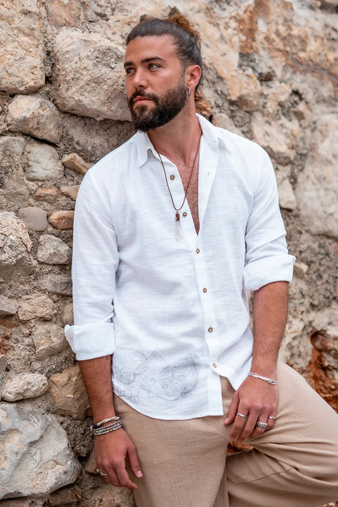 Met de Blouse Andres Mandala White van ibzmode ben je klaar voor elke summer getaway. Sluit met houten knoopjes aan de voorkant, heeft een kraagje, draagt lekker luchtig, heeft een handg De luchtige stof voelt zacht aan op je huid. Voeg deze must-have toe aan je zomergarderobe.