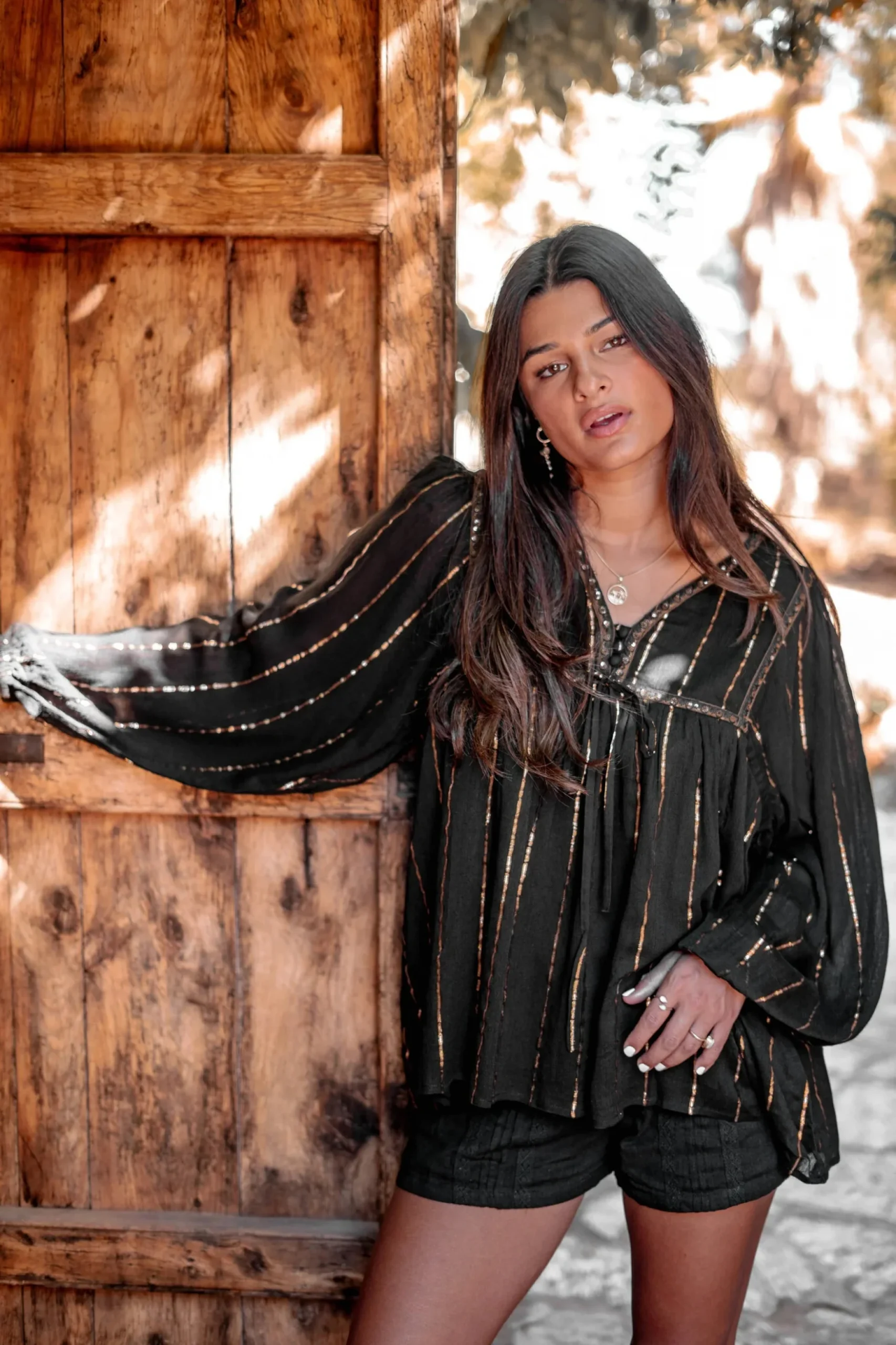 Creëer jouw ultieme zomerse look met de Blouse Gigi Stripe Black in de kleur black. Heeft een V-hals met knoopjes, pofmouwen met een elastische band bij de polsen, bewerkt met lurex Het natuurlijke materiaal zorgt voor een luchtige feel. Shop nu bij ibizamode en straal deze zomer in stijl.