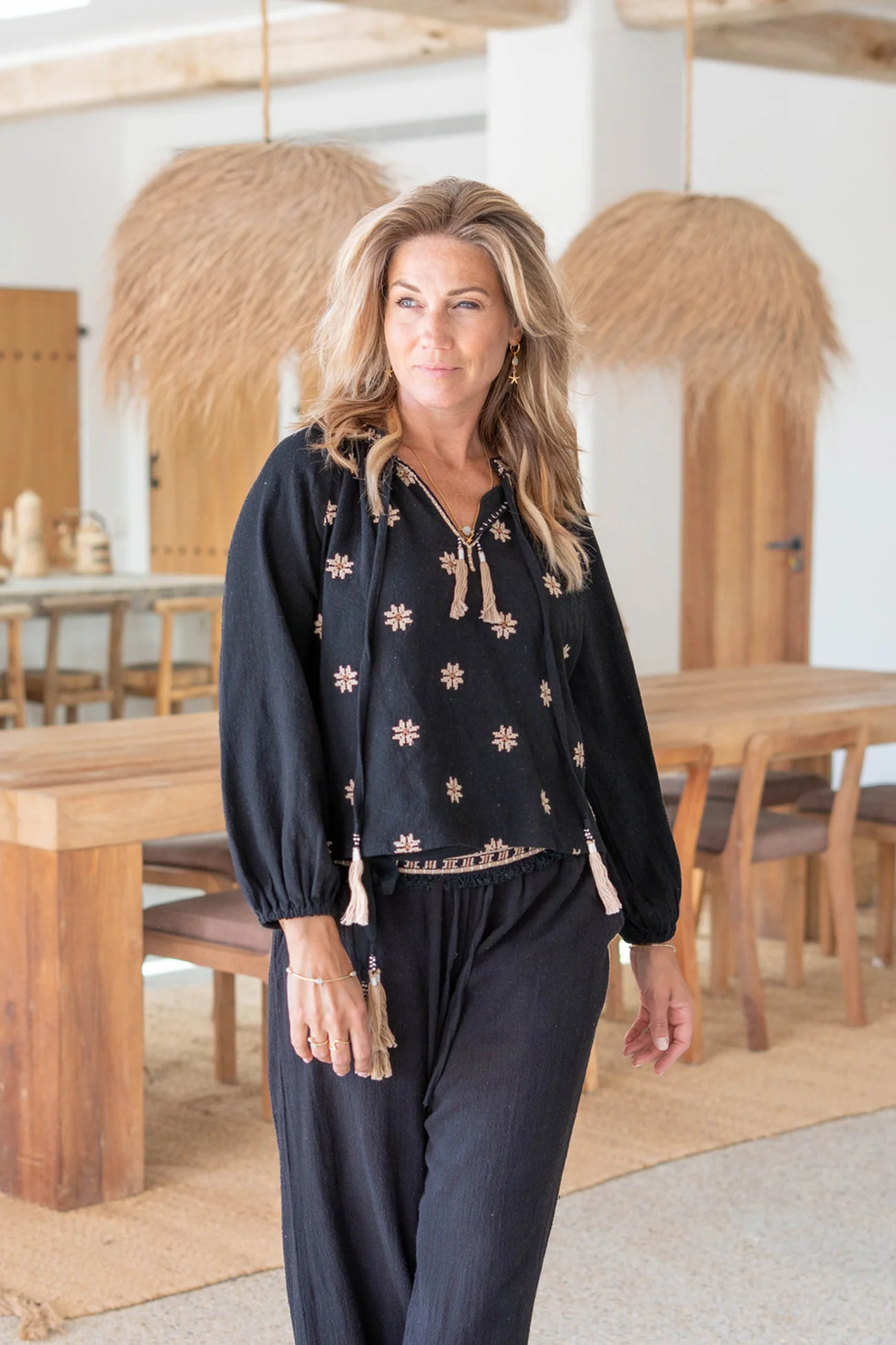 Op zoek naar een tijdloze en veelzijdige toevoeging aan je kledingkast? Dan is de Blouse Lindo Suave Black de perfecte keuze! Deze stijlvolle blouse, geschikt voor het herfst/winter seizoen van 2025, is gemaakt van hoogwaardige materialen en heeft een elegante pasvorm. De zwarte kleur maakt het makkelijk te combineren met verschillende outfits, terwijl de subtiele details zorgen voor een moderne uitstraling. Een must-have voor iedere fashionista!