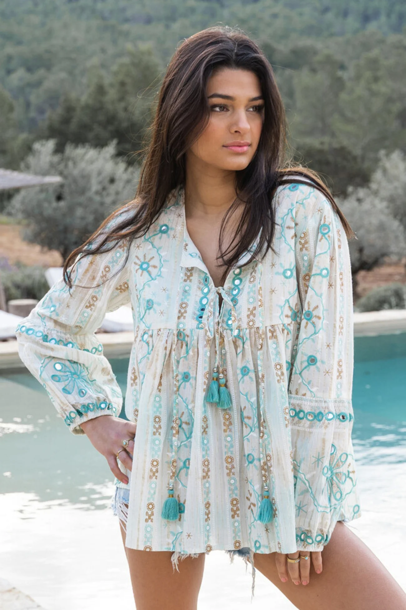 Creëer jouw ultieme zomerse look met de Blouse Paloma Aqua in de kleur aqua. Draag het met je favoriete accessoires voor een echte brands of Ibiza-look. Shop nu bij ibizamode en straal deze zomer in stijl.