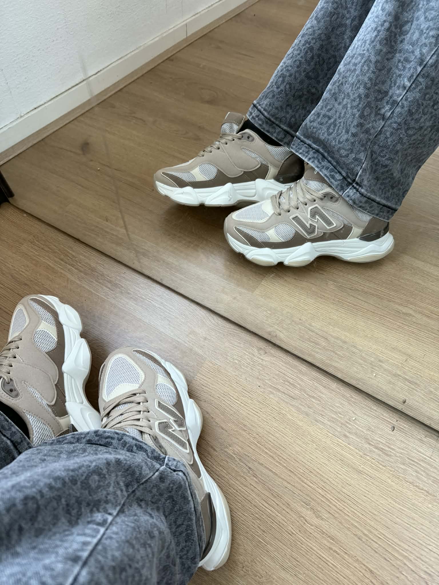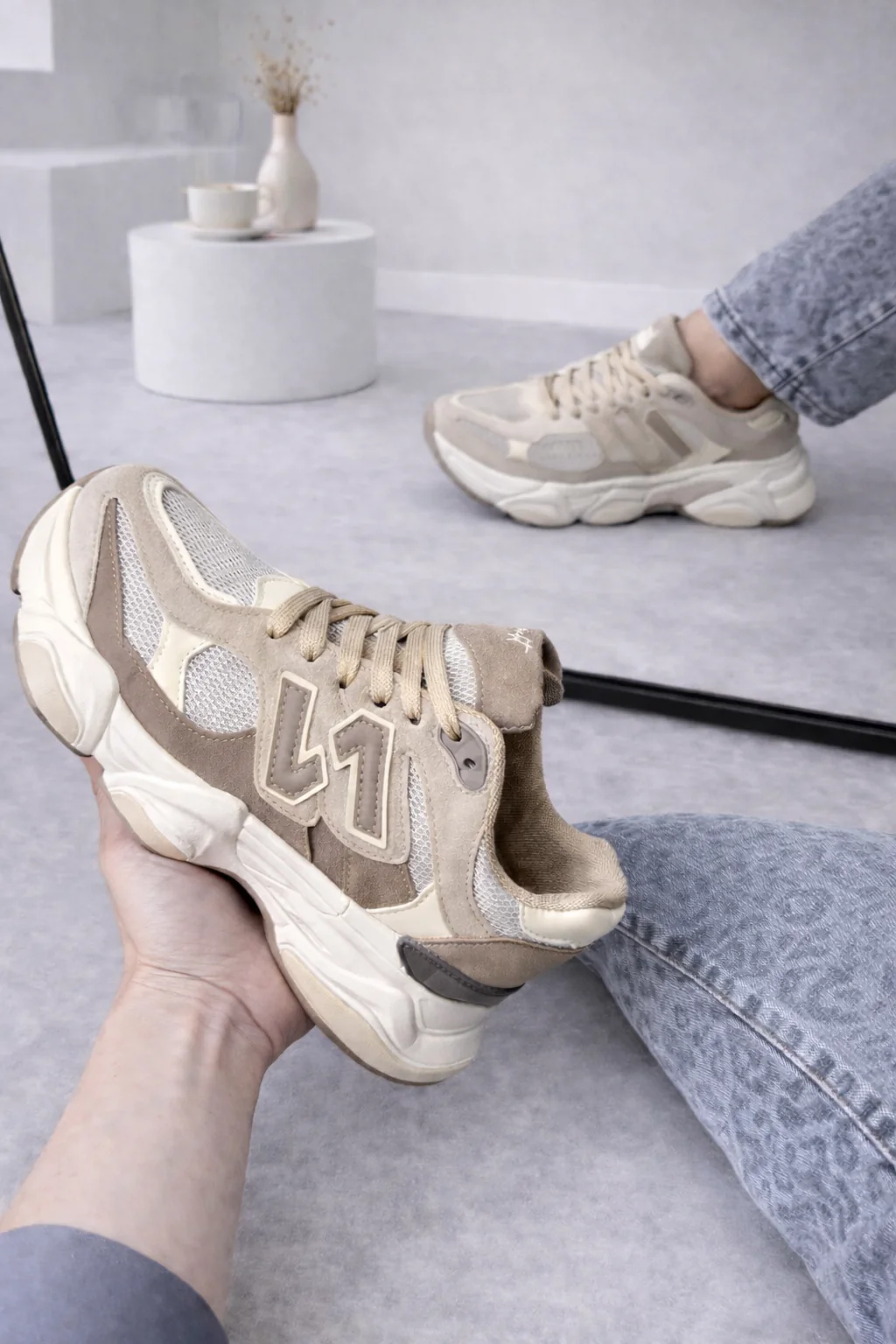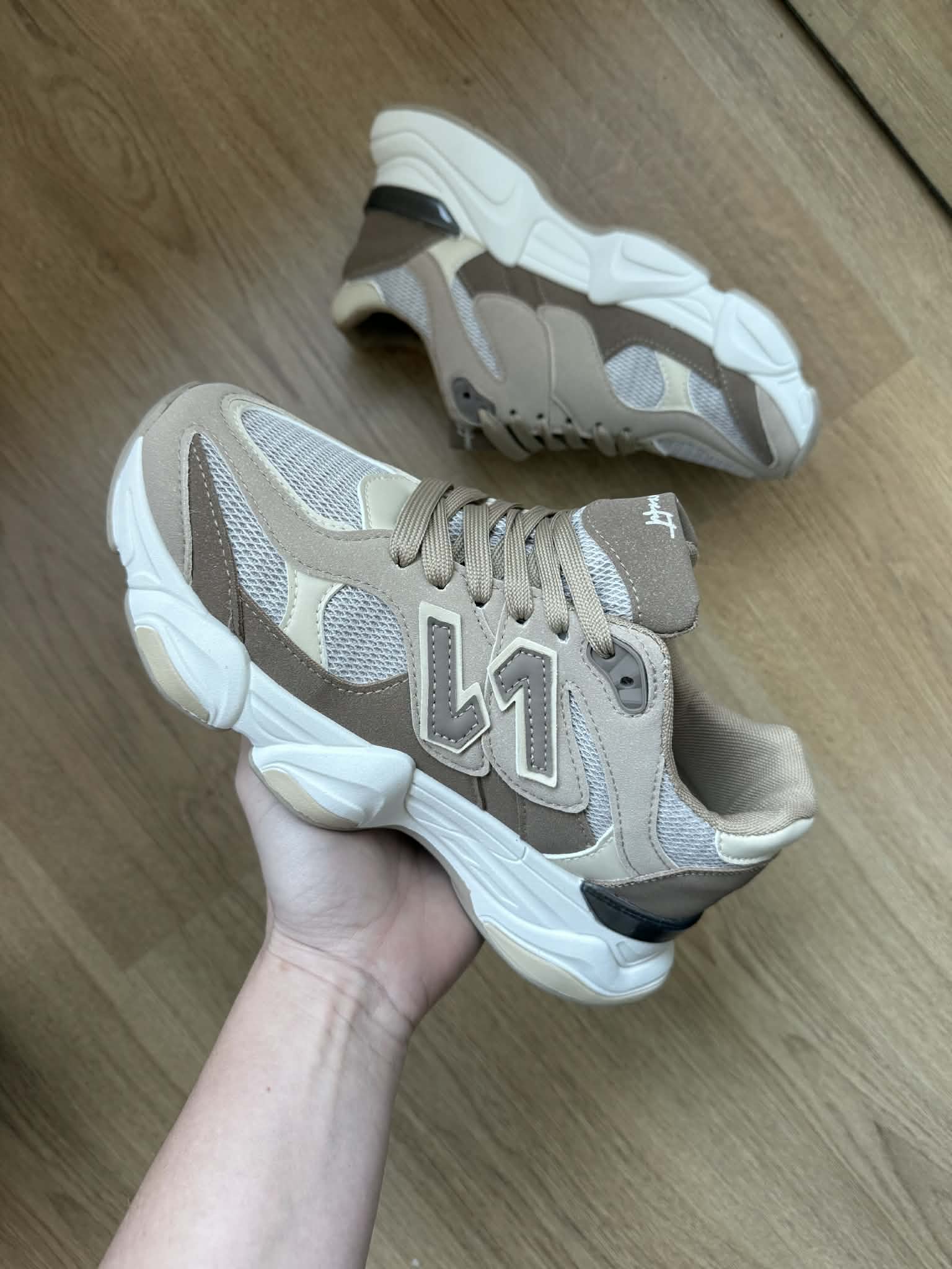 | Kleur: Lichtbeige, met donkerbeige, bruin en wit. |