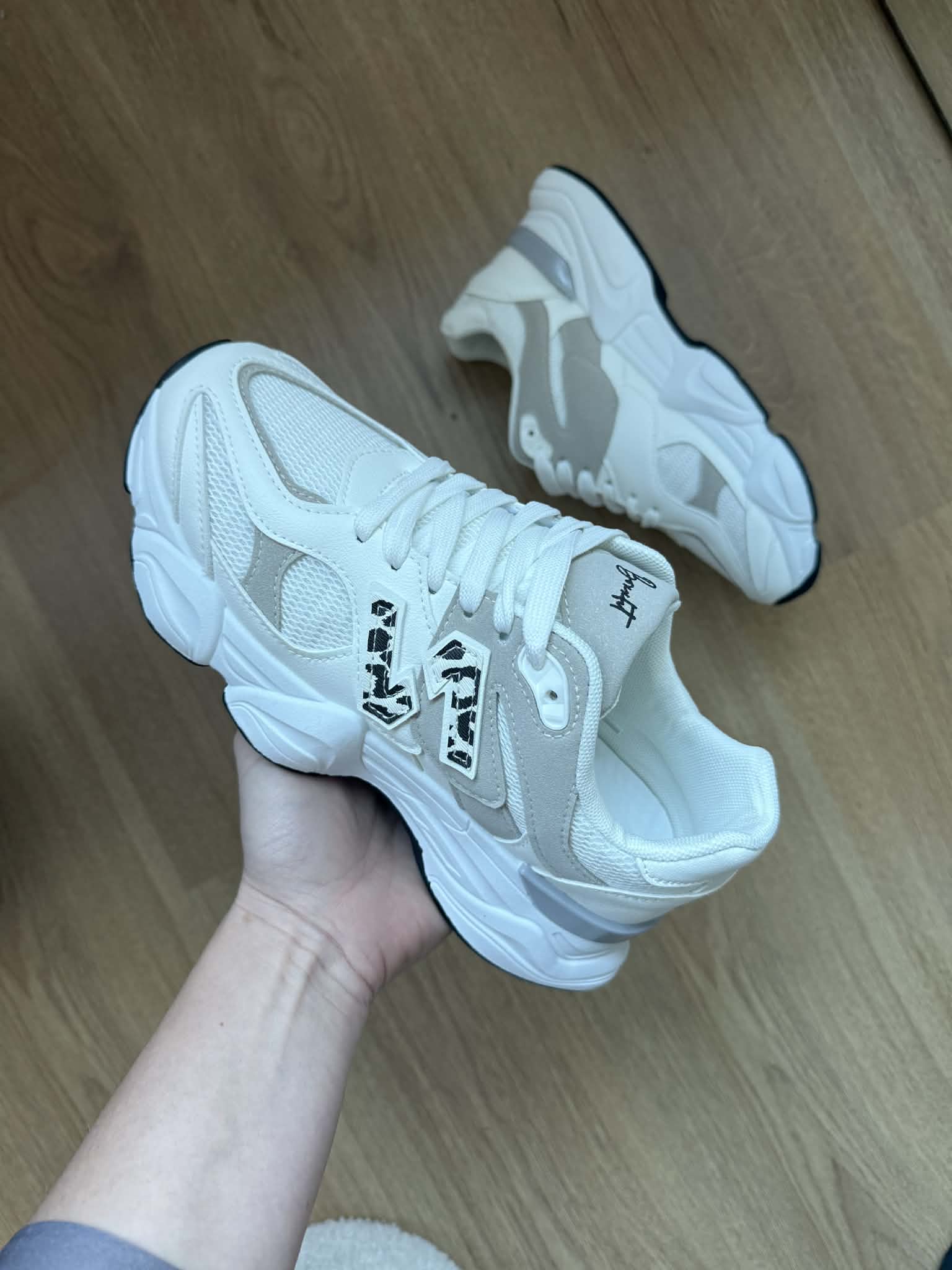 | Kleur: Wit met panterprint & grijze details. |