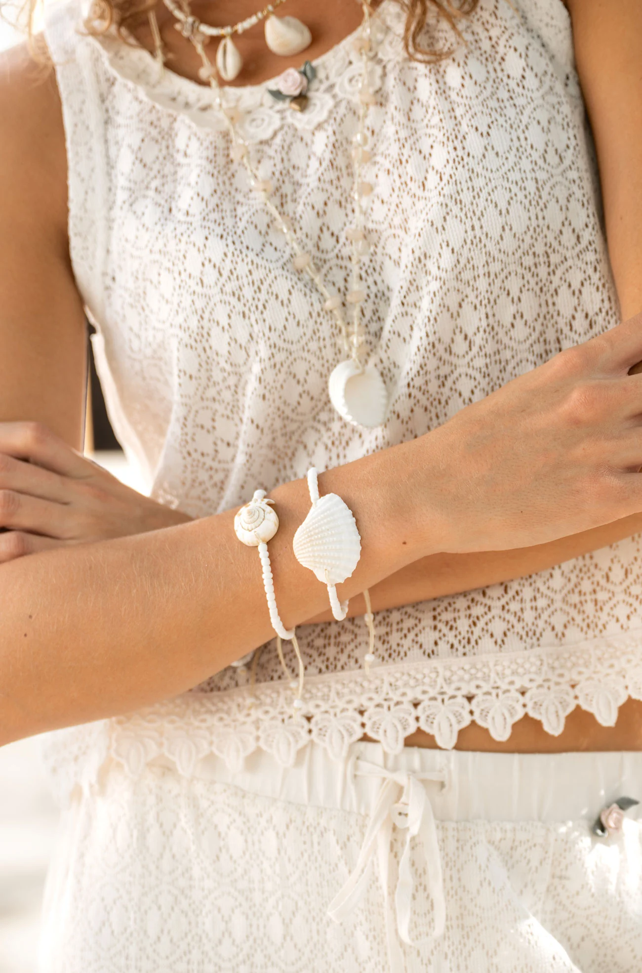 De Bracelet Coralina Cream is een verfijnd armbandje met een zachte, zomerse uitstraling. De crèmekleur roept direct het gevoel op van zon, zee en ontspannen eilanddagen. Dit sieraad is ontworpen als subtiele finishing touch die elke outfit licht en stijlvol maakt.