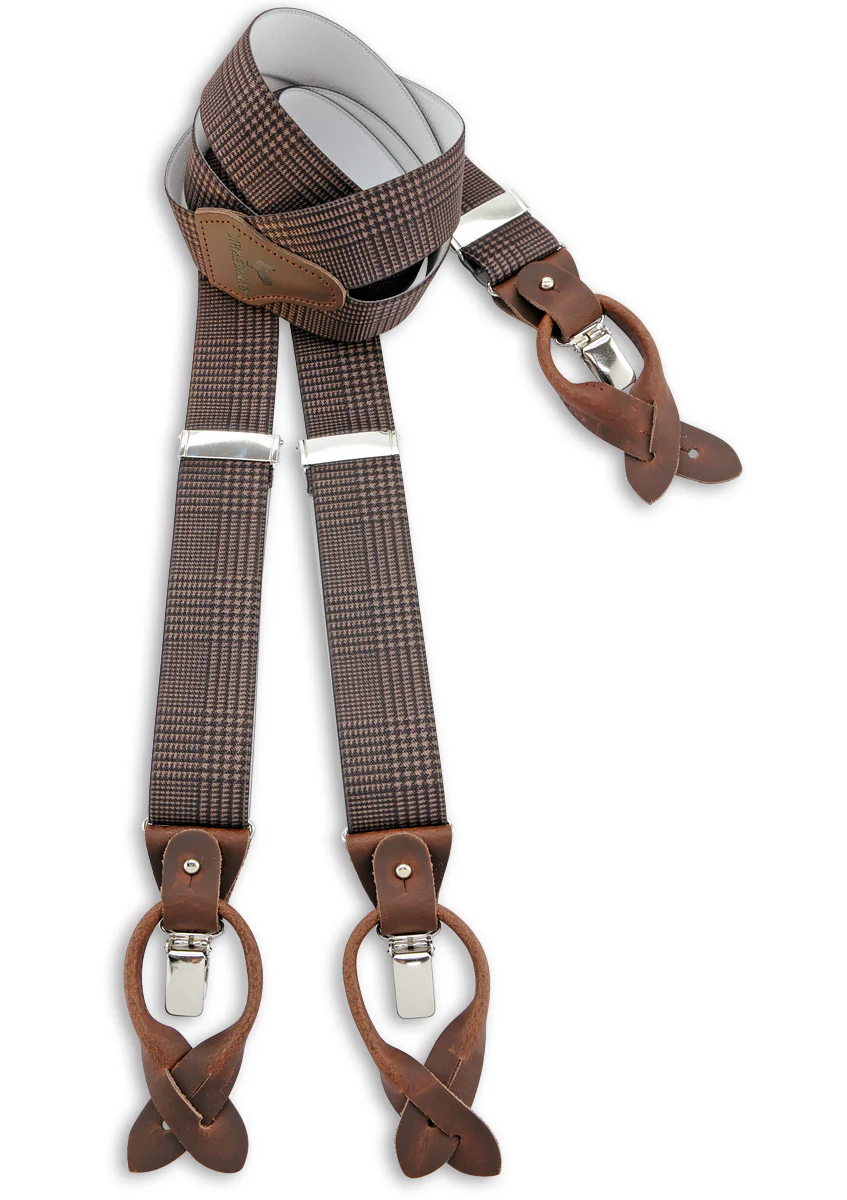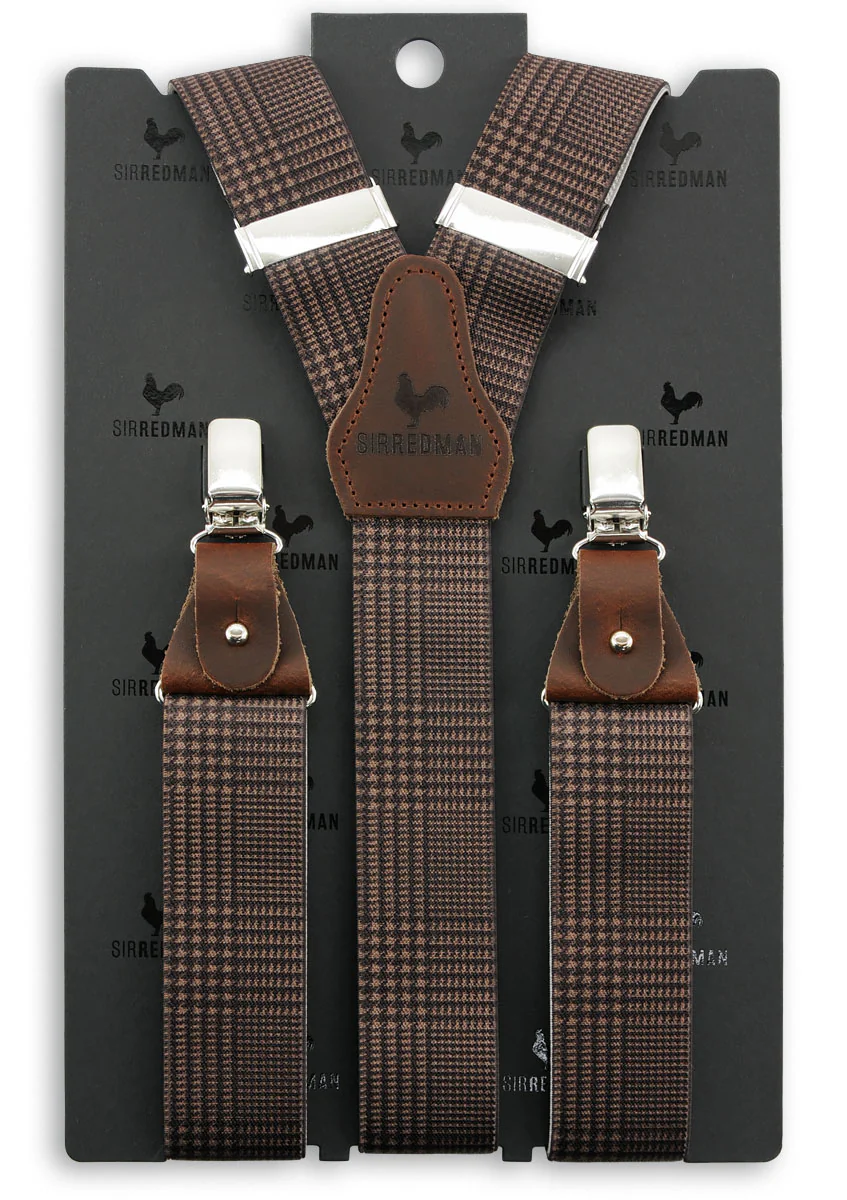 De Sir Redman Bretels Classic Luxe Geruit Pied-de-Poule zijn een ode aan tijdloze stijl en vakmanschap. Met hun subtiele bruine Pied-de-Poule-patroon voegen deze bretels een uniek detail toe aan elke outfit. Perfect voor zowel zakelijke gelegenheden als een casual outfit met een klassieke touch.