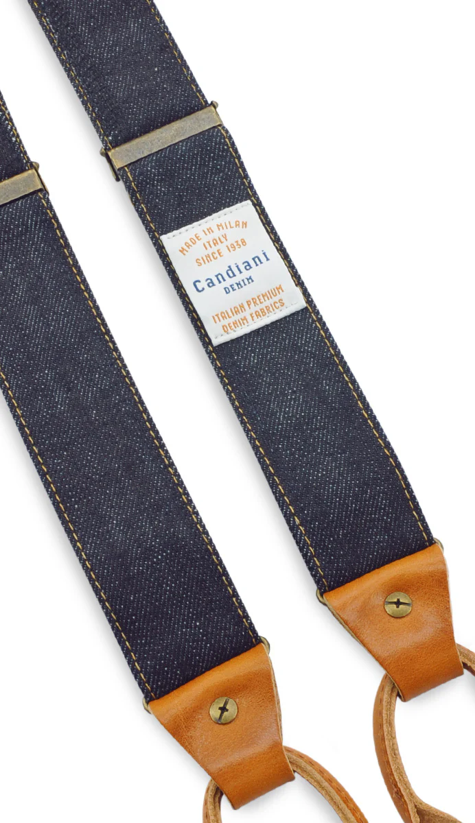 De Sturdy Stitch bretels zijn vervaardigd van Candiani denim, afkomstig van een van de meest prestigieuze denimweverijen ter wereld. Candiani, opgericht in 1938 in Italië, staat bekend om zijn duurzame en hoogwaardige stoffen. Het chroomvrij gelooide nerfleer van de lussen voegt luxe en duurzaamheid toe. Naarmate je de bretels draagt, ontwikkelt het leer een prachtige patina, wat zorgt voor een uniek karakter.