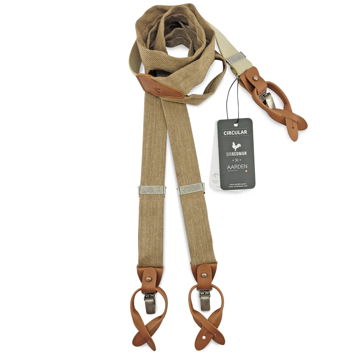 Maak kennis met de Bretels x Aarden Gentleman Set Eco Elliot, een unieke samenwerking tussen Sir Redman en het duurzame merk Aarden. Deze set combineert tijdloze klasse met milieubewust vakmanschap. Gemaakt van gerecyclede wol en katoen door Enschede Textielstad, biedt deze set een stijlvolle keuze voor de bewuste gentleman.