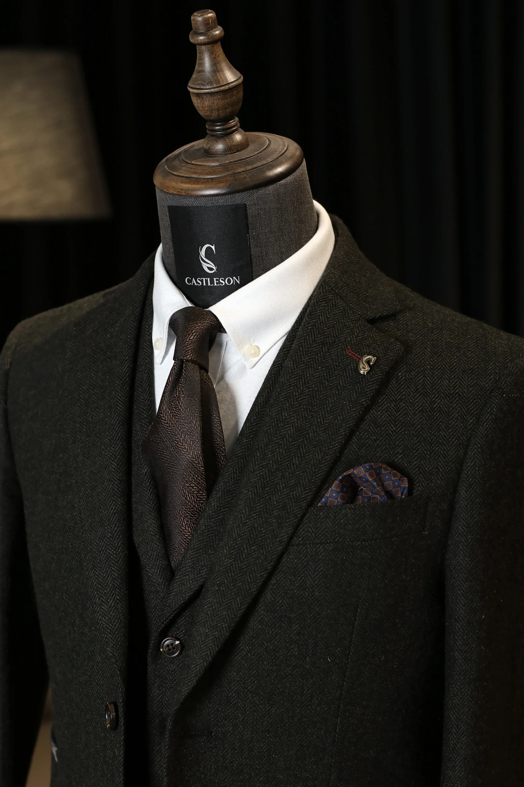 Wat het CASTLESON Chief – Gentleman Olive Tweed echt bijzonder maakt, zijn de verfijnde details. Boven de zakken van het colbert vind je een velvet afwerking: subtiel, chique, net dat beetje extra. Aan de binnenkant wacht een opvallende lining — een binnenvoering die bij het openen van het jasje voor een stijlvolle verrassing zorgt. Het gilet heeft een omgeslagen revers die direct in het oog springt, terwijl elk onderste knoopsgat in een afwijkende kleur is afgewerkt. Dit soort details laten zien dat er aandacht is besteed aan ieder onderdeel van het pak. Het zijn deze kleine accenten die een gewoon pak veranderen in een persoonlijke keuze.