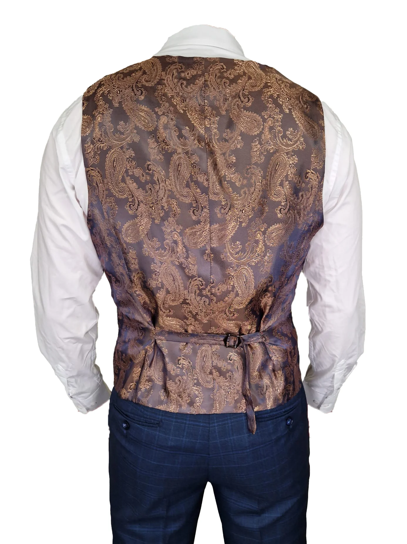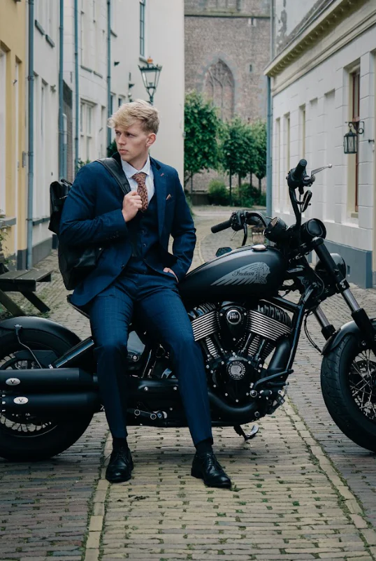 | Het driedelige pak is geschikt voor verschillende gelegenheden, van een formele bruiloft tot een zakelijke bijeenkomst. |