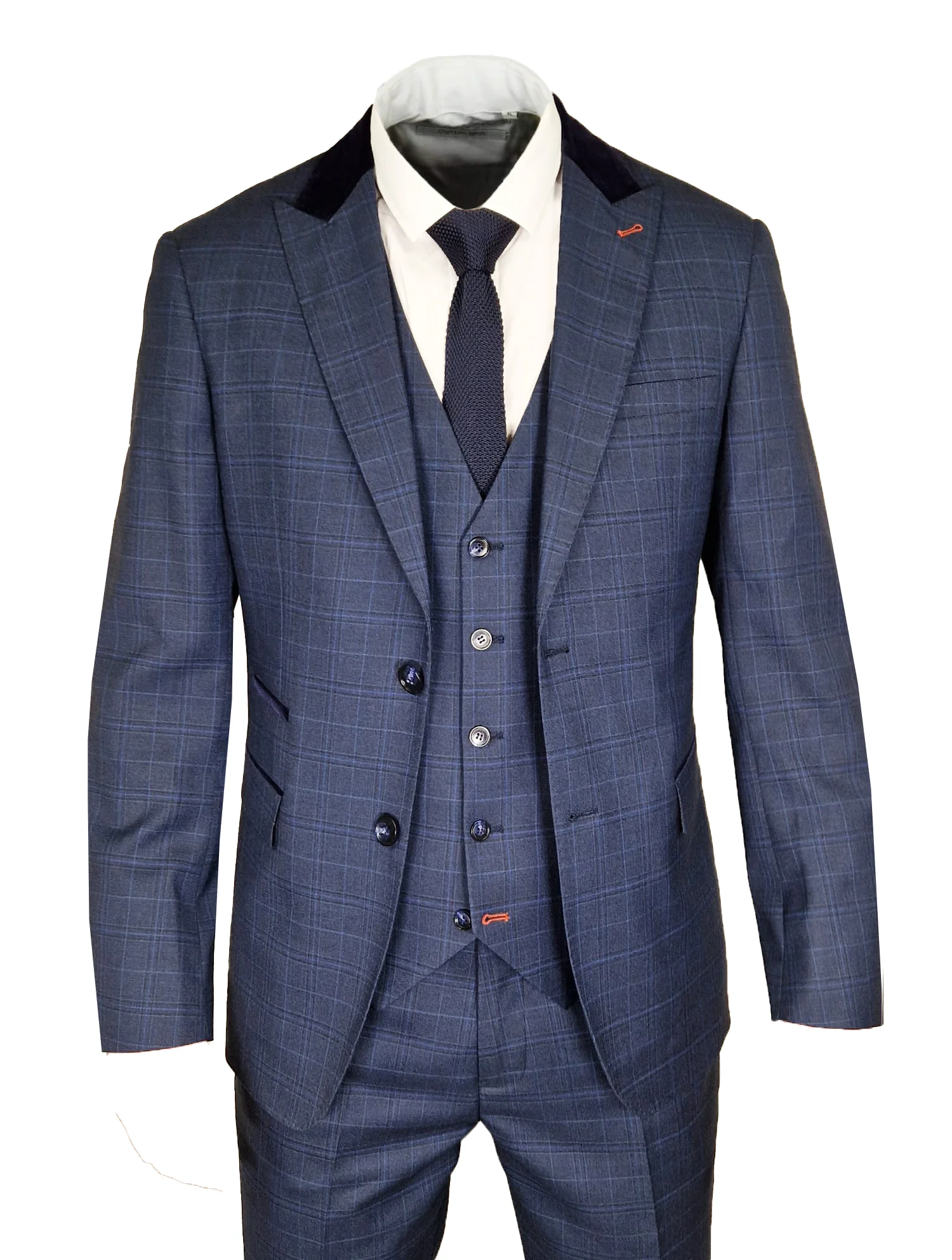 CASTLESON Corporal- Driedelig Herenpak Check Navy