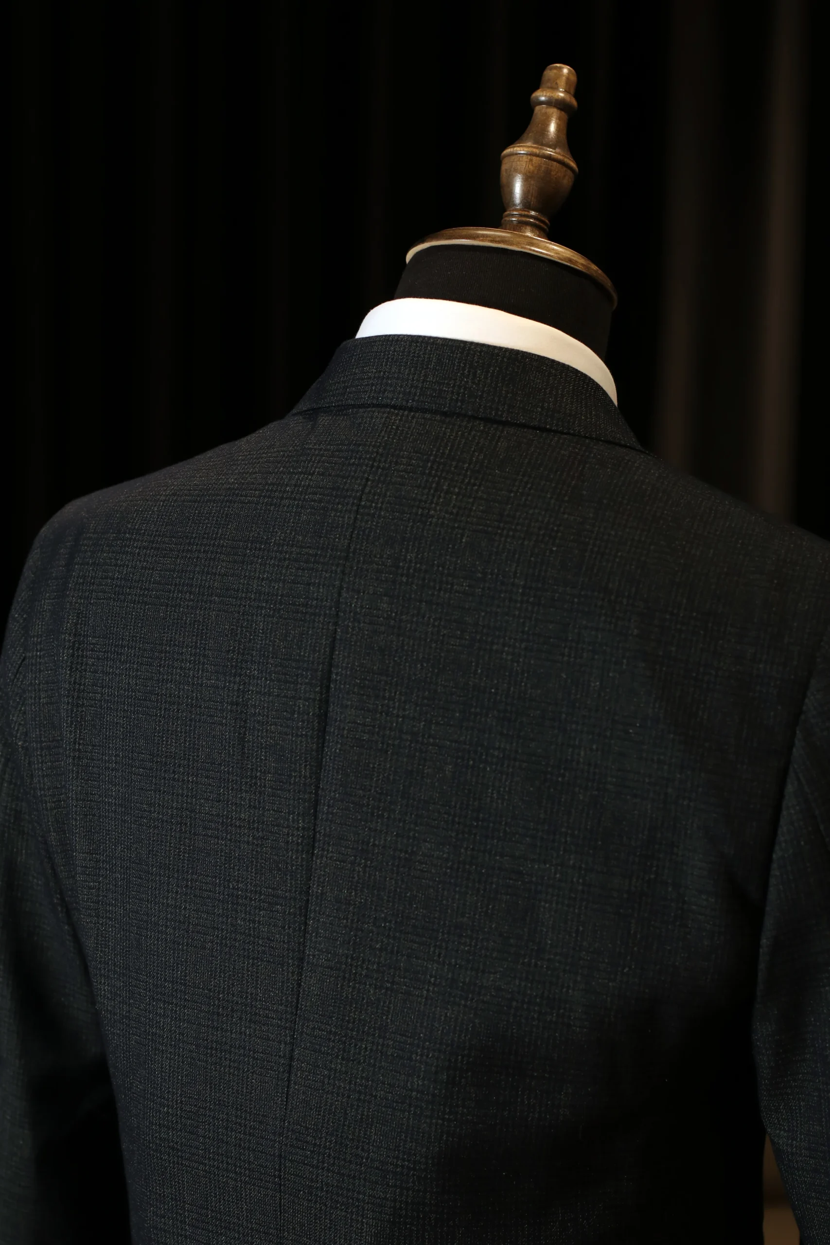 Oog voor Detail Het zijn de details die dit pak onderscheiden van de massa. Let op het subtiele blauwe stiksel op de revers (het knoopsgat), de luxe bijpassende knopen en de perfecte snit van het gilet. Of je het jasje nu open draagt voor een nonchalante look of gesloten voor een strak silhouet; de pasvorm sluit naadloos aan.
