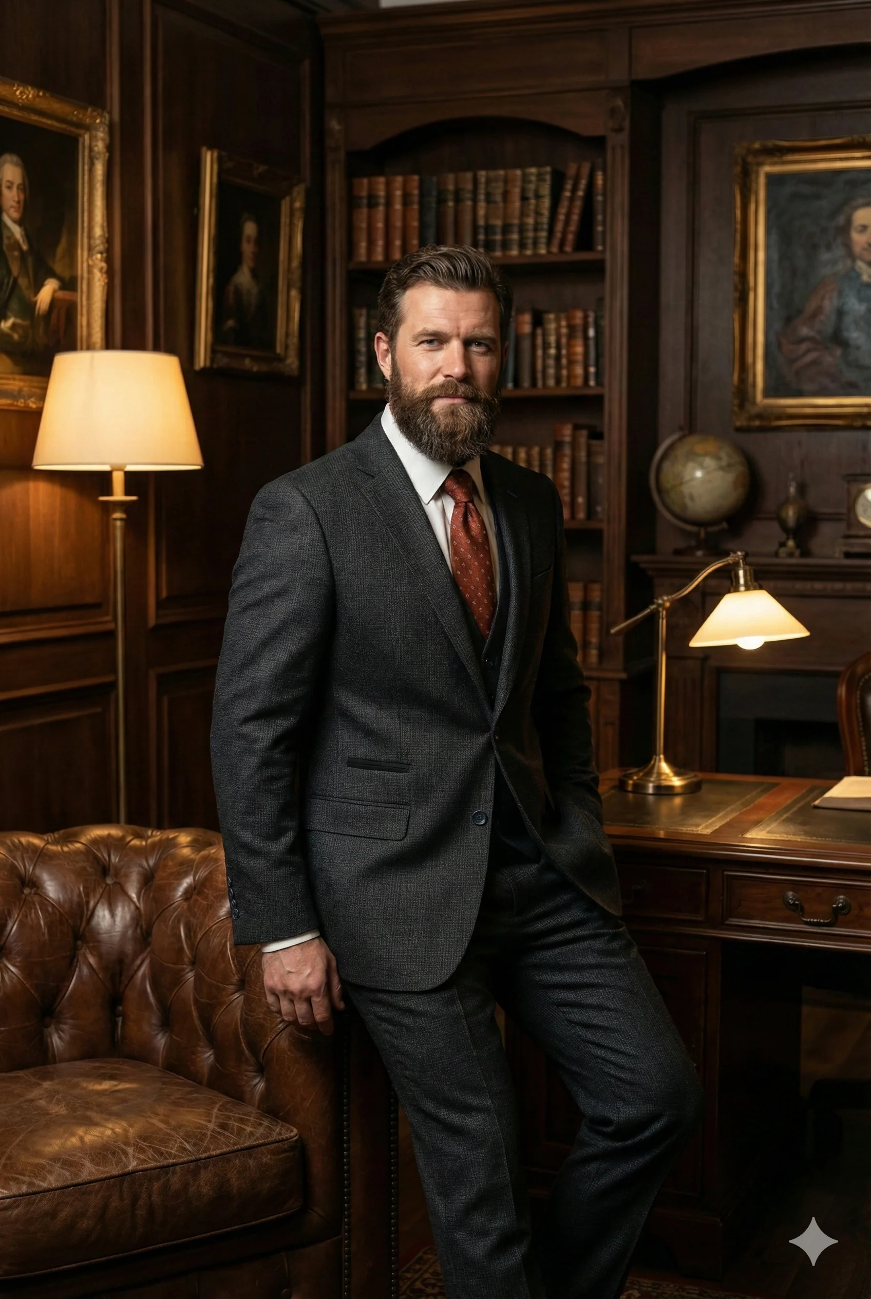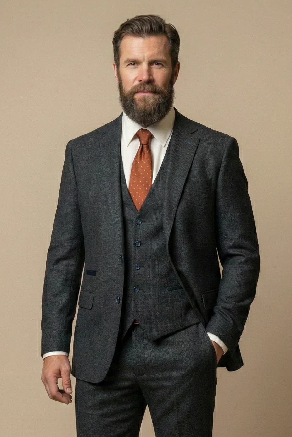 Unieke Kleur en Textuur De stof heeft een prachtige, diepe olijfgroene tint met een subtiel ingeweven patroon. Dit geeft het pak die gewilde, authentieke Engelse tweed-uitstraling, maar dan met het draagcomfort van nu. De kleur is veelzijdig: donker genoeg voor formele gelegenheden, maar sprekend genoeg om op te vallen op een bruiloft of tijdens een speciaal diner.