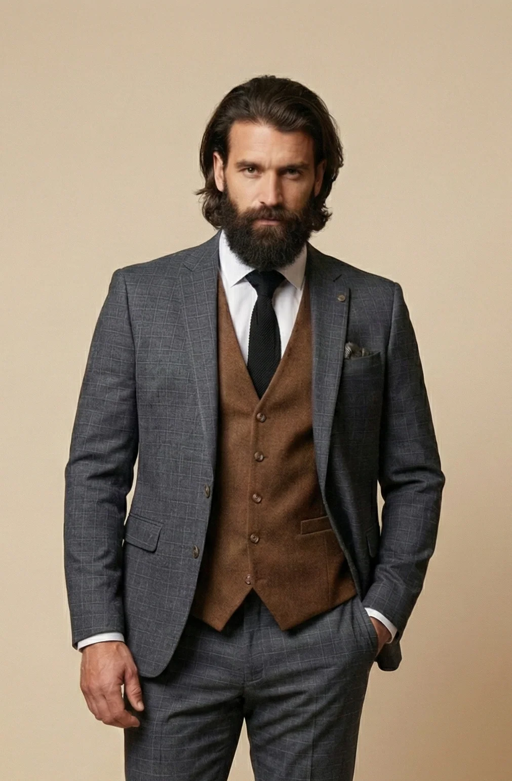 CASTLESON Phantom – Driedelig Herenpak Grey Mix & Match Bradley tan