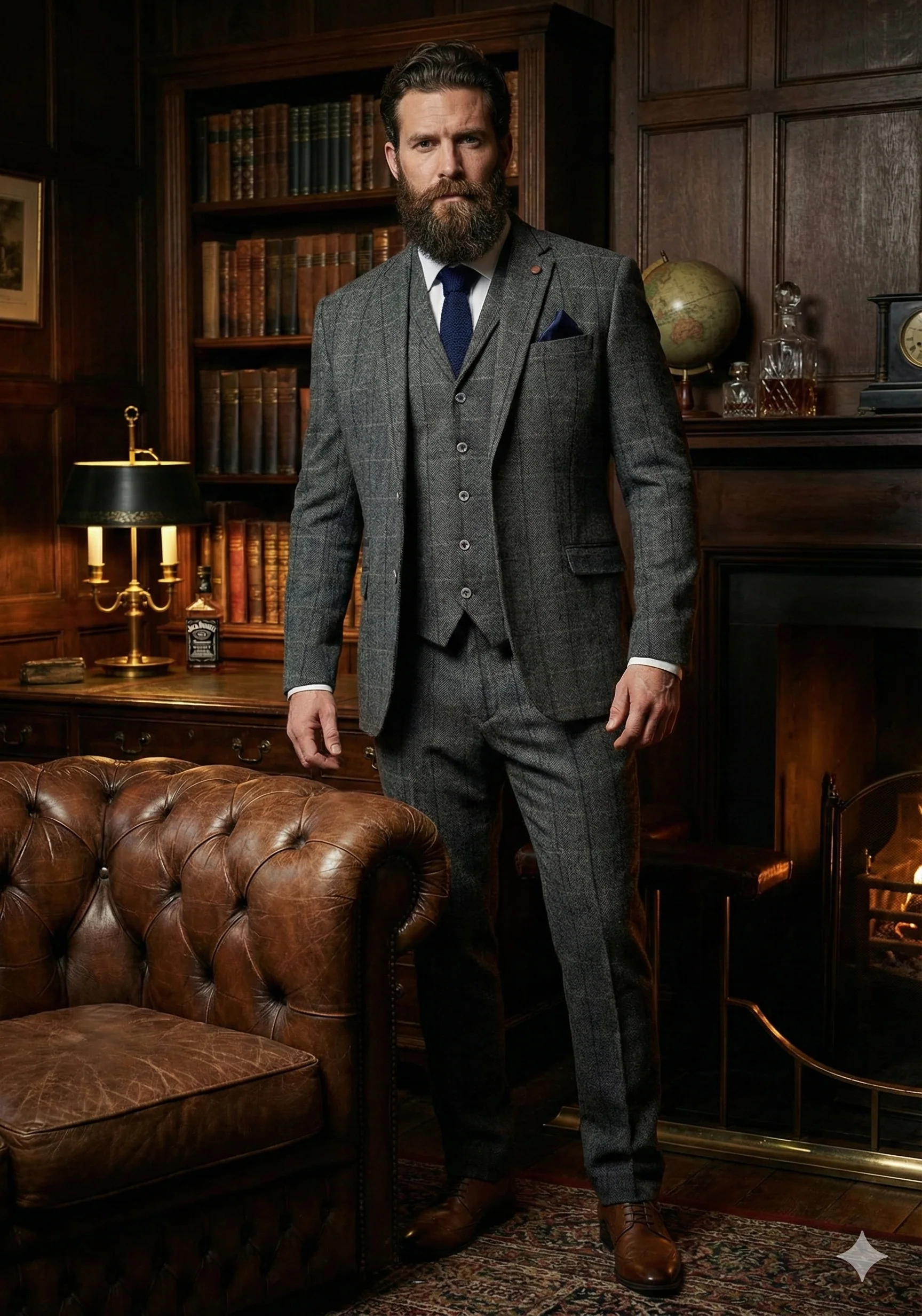 De man die dit pak draagt, leeft niet in het verleden – hij gebruikt het verleden als fundament. Hij weet dat stijl geen ruis nodig heeft om indruk te maken. Zijn kracht zit in rust, in beheersing, in details die niet schreeuwen maar fluisteren.