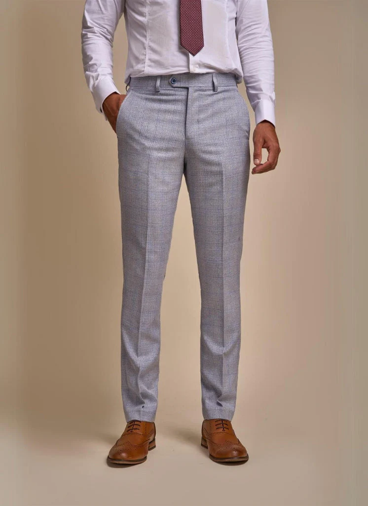 - All-in met het volledige pak: Wil je echt indruk maken? Ga dan voor het volledige 3-delige Cavani Caridi Sky Blue pak. Voeg een lichtblauw gilet en een stropdas toe om de look compleet te maken.