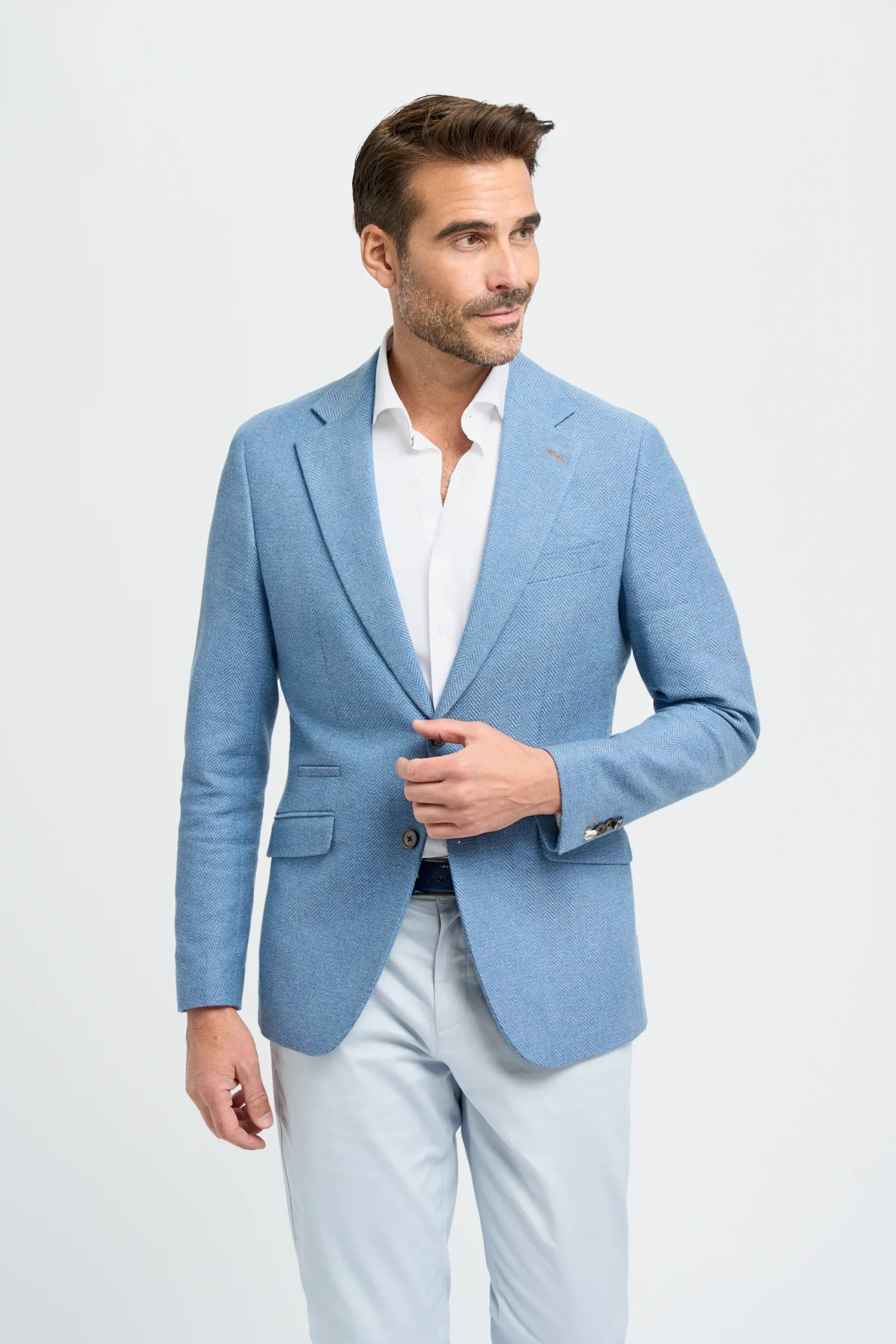 De Felix Blue blazer heeft een tailored fit, wat betekent dat het perfect is voor de man die van een strakke, maar comfortabele pasvorm houdt. De premium stofmix maakt het colbert niet alleen stijlvol, maar ook comfortabel om te dragen. Het visgraatpatroon is subtiel, waardoor het colbert een extra dimensie krijgt zonder dat het te druk overkomt. De frisse blauwe kleur past zowel bij zakelijke als casual gelegenheden, waardoor je niet alleen in de vergaderzaal, maar ook daarbuiten indruk maakt.