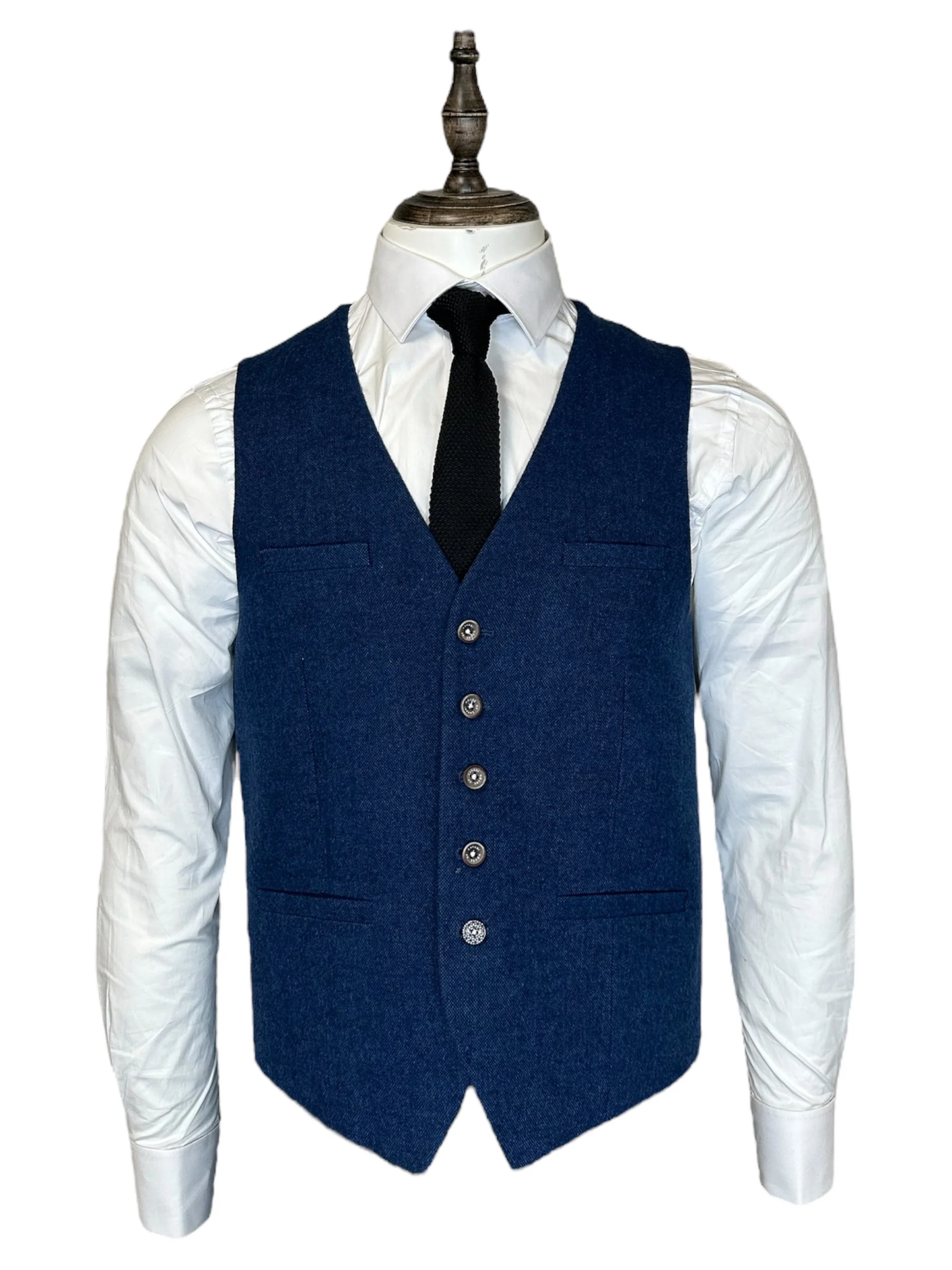 Ontdek het Cavani Gilet Tweed Orson Blue, een must-have voor de moderne gentleman die houdt van stijl en verfijning. Dit gilet combineert klassieke tweed met een eigentijdse slim fit pasvorm, ideaal voor formele en informele gelegenheden.