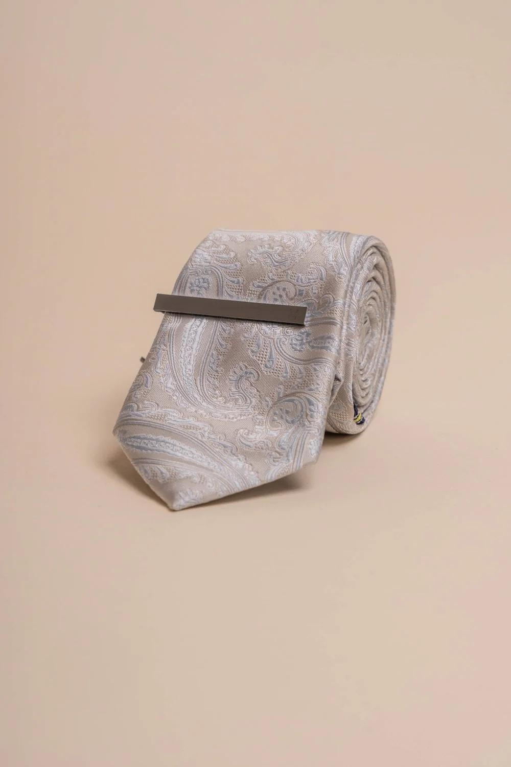 Cavani – Lichtgrijze Paisley Stropdas set