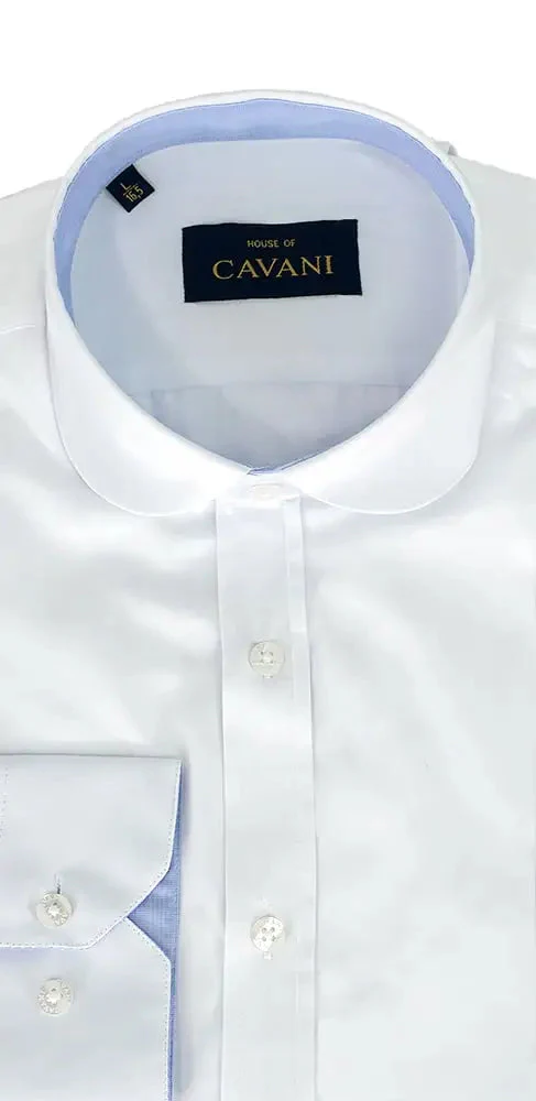 Maak jouw outfit af met dit prachtige overhemd van Cavani. Het overhemd past met zijn ronde boord perfect in engelse stijl. Dit overhemd past uitstekend bij onze driedelige herenpakken.