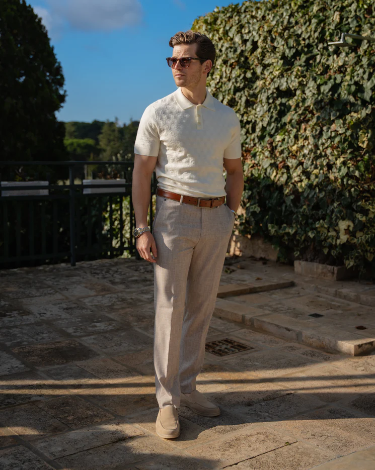 De Armando Polo, beschikbaar in Ecru, Sage en Navy, biedt een verfijnde en casual uitstraling. Deze veelzijdige polo is ideaal voor verschillende gelegenheden en tilt je outfit moeiteloos naar een hoger niveau. Gemaakt van 100% katoen, biedt het comfort en ademend vermogen, zodat je de hele dag koel en stijlvol blijft.