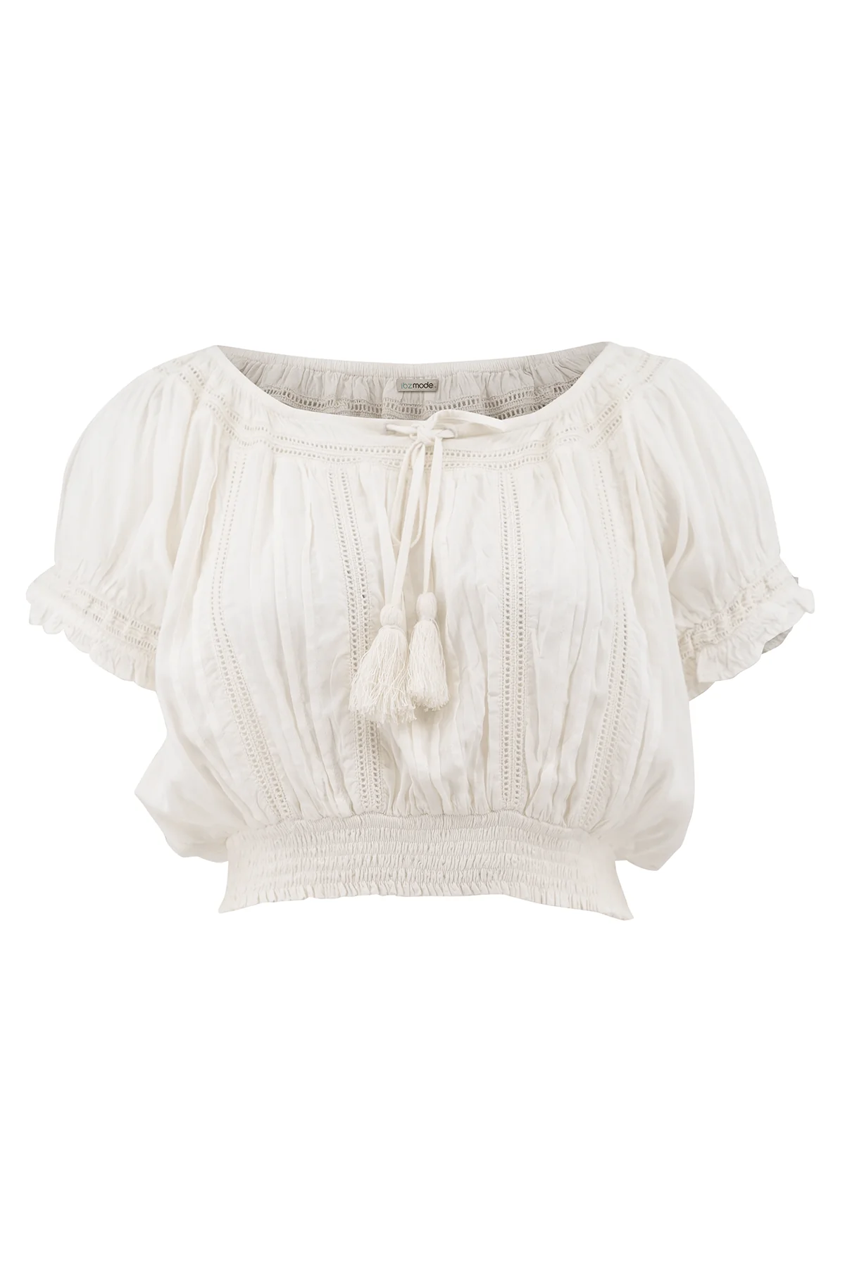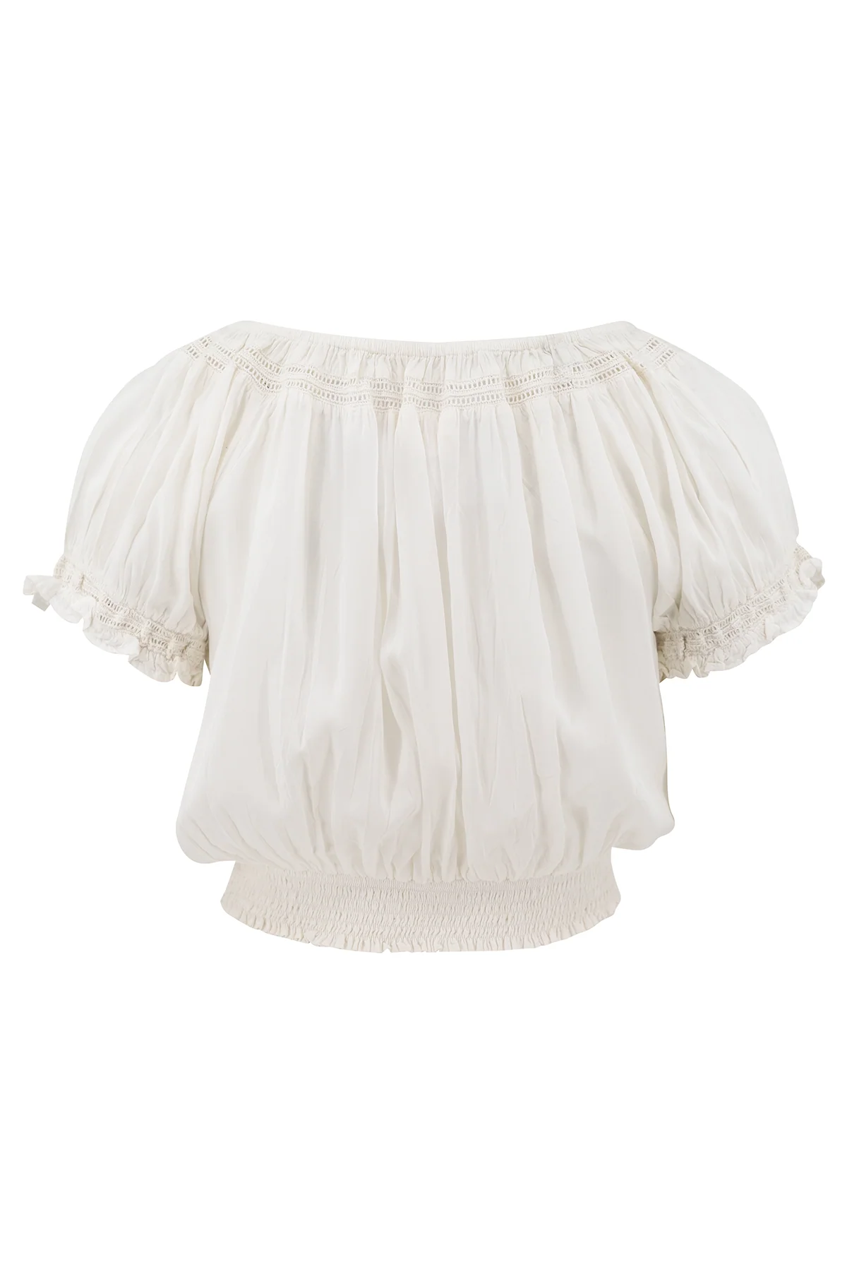 Geef jouw garderobe een update met de Crop Top Chalina Ivory, ontworpen voor zonnige dagen. Kan off shoulder gedragen worden, bewerkt met crochet details, crop top model, heeft korte pof mouwt Gemaakt van 100% viscose, licht en comfortabel voor warme dagen. Shop nu bij ibizamode en straal deze zomer in stijl.