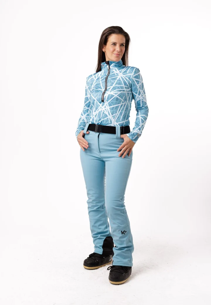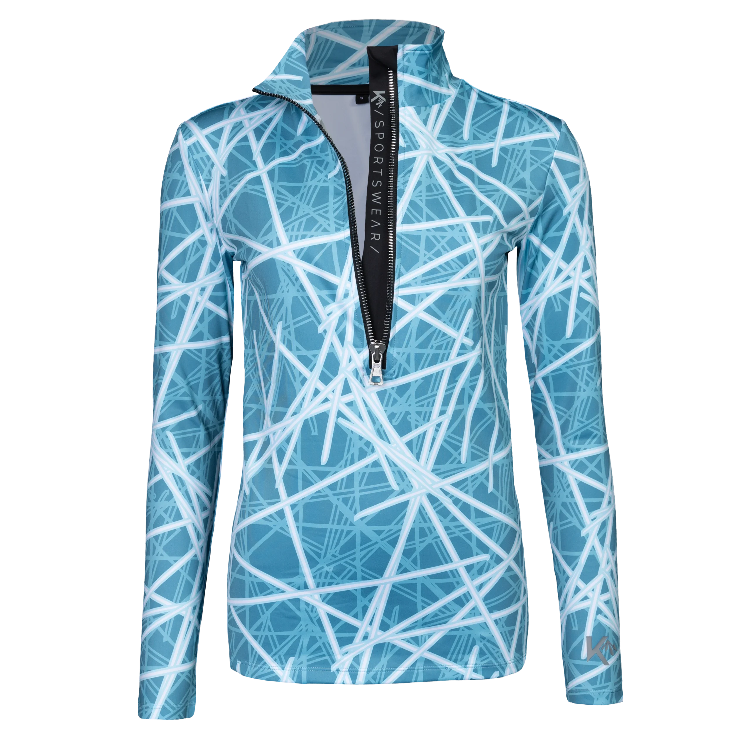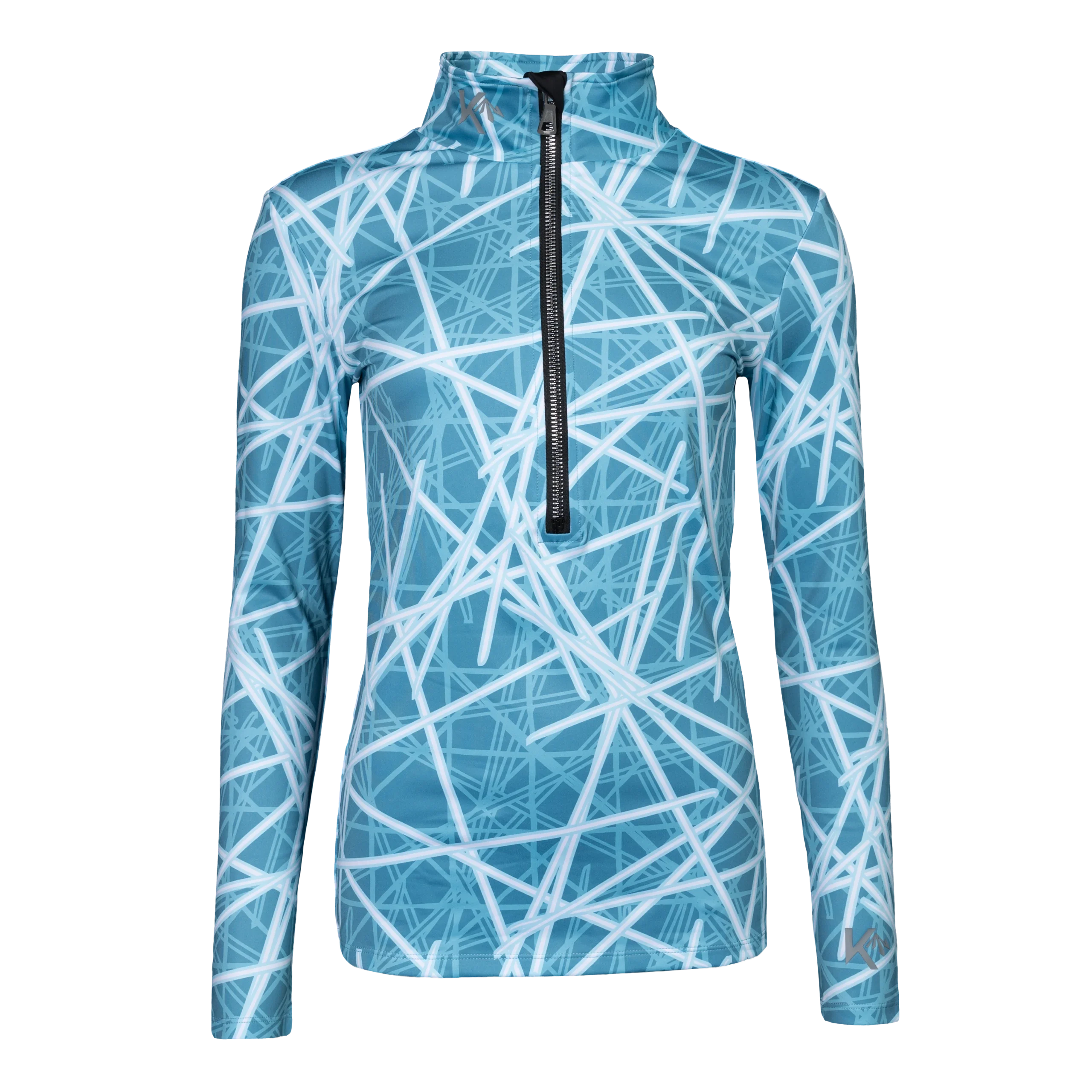 Deze midlayer pully met rits heeft een prachtige abstracte grafische print die is geïnspireerd op ijs. Het getailleerde model zorgt voor een perfecte warme en comfortabele laag onder je ski-jas. De zilveren rits maakt de trui stoer en chic tegelijk. Open heeft de trui een extra vleugje detail: hij is comfortabel op een terras of in een bar, want de rits kan wijd open en de col zorgt ervoor dat elk item dat je erover draagt comfortabel en warm aanvoelt in de nek.