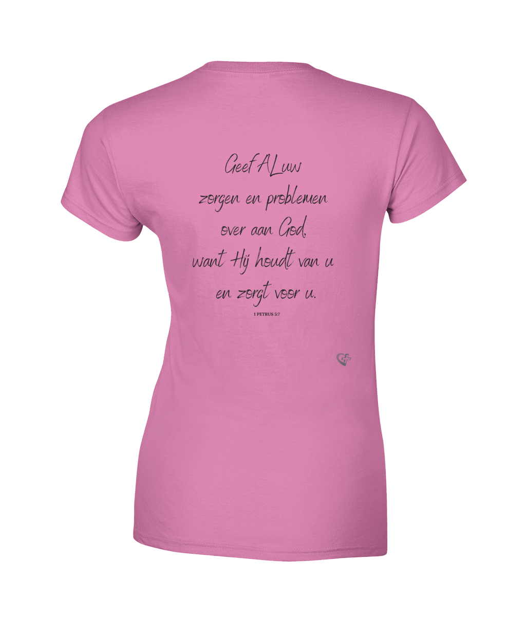 Dit Dames T-Shirt is een fantastische manier om je geloof te delen met anderen. Het is voorzien van inspirerende teksten die je eraan herinneren hoe belangrijk je relatie met God is. Het dragen van dit shirt kan dan ook een mooie manier zijn om je geloof uit te dragen. Het is een geloofsverklaring die anderen inspireert en aanmoedigt om dichter bij God te komen. De tekst op dit T-shirt getuigt van Gods liefde en genade, waardoor het een perfect geschenk is voor elke gelovige vrouw. Je kunt dit T-shirt dragen als een manier om te getuigen van je geloof en om anderen te bemoedigen om zich te openen voor Gods woord.