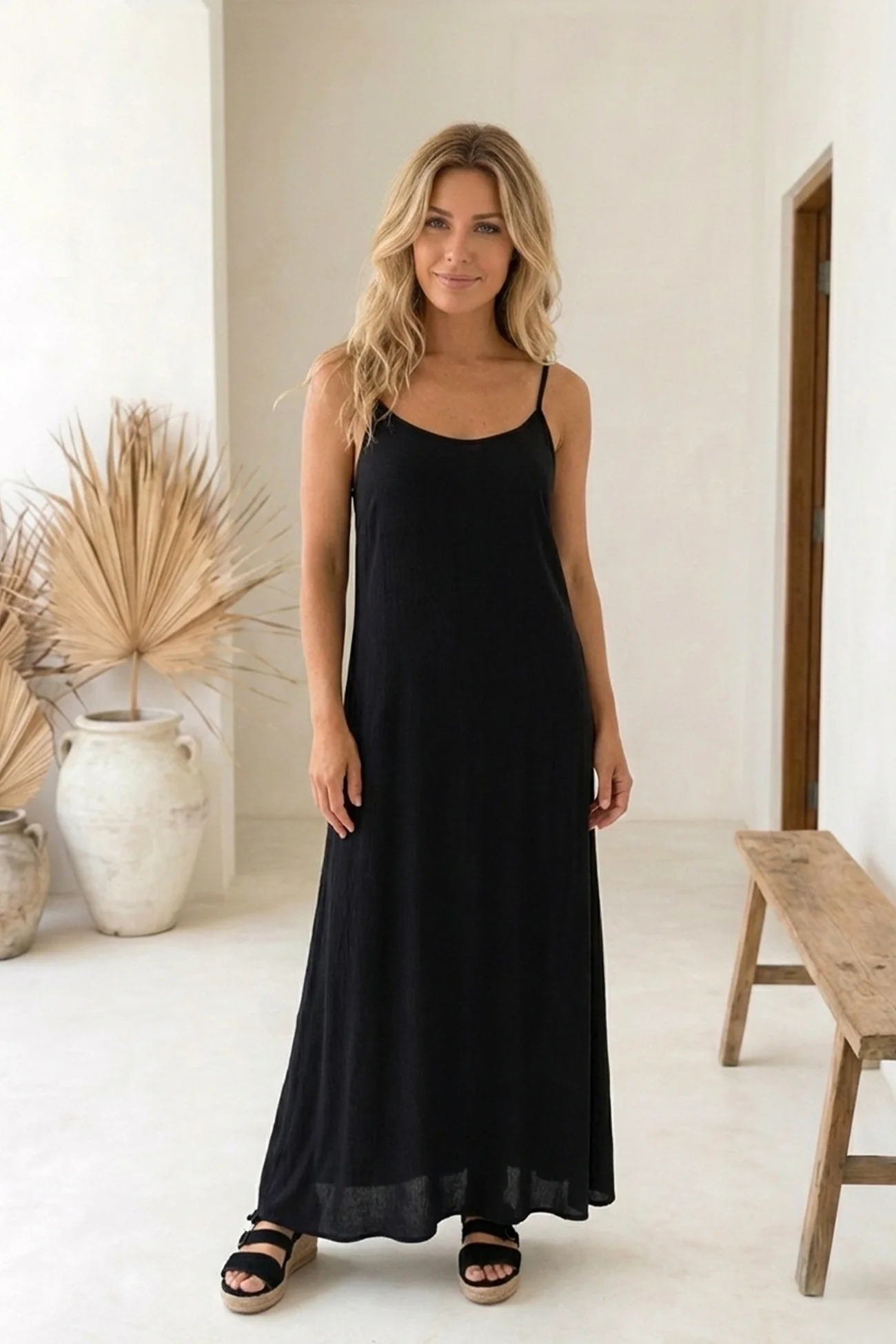 Dress Icha Black is ook een fijne keuze als reiskleding. De soepele stof kreukt nauwelijks en voelt comfortabel in het vliegtuig of tijdens een lange autorit. In je koffer neemt de jurk weinig ruimte in en je trekt haar zo weer aan. Overdag draag je de jurk met slippers en een shopper. In de avond wissel je naar laarsjes of hakken en voeg je een tas en sieraden toe. Zo ga je moeiteloos van strandwandeling naar diner.