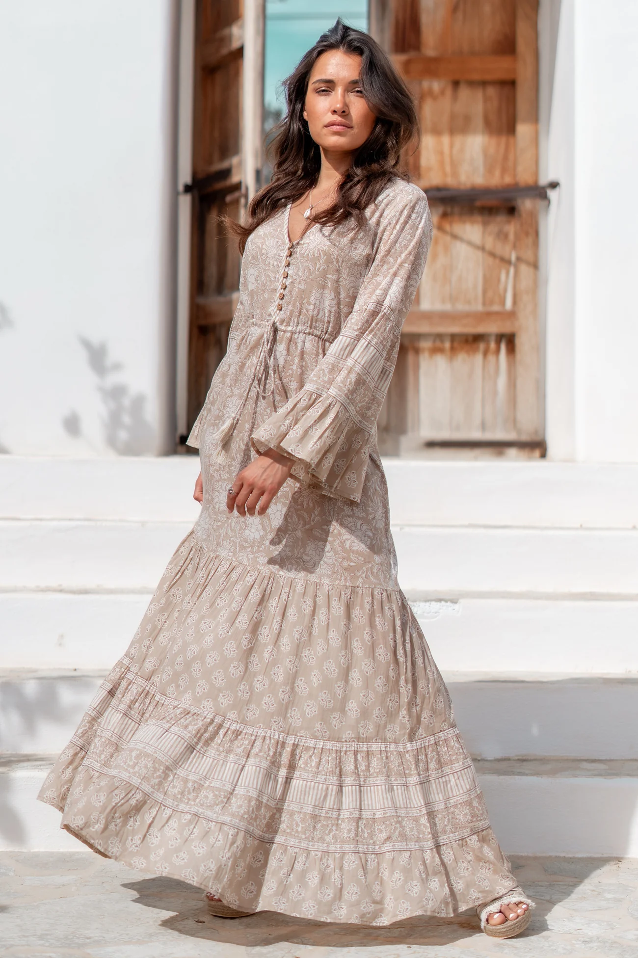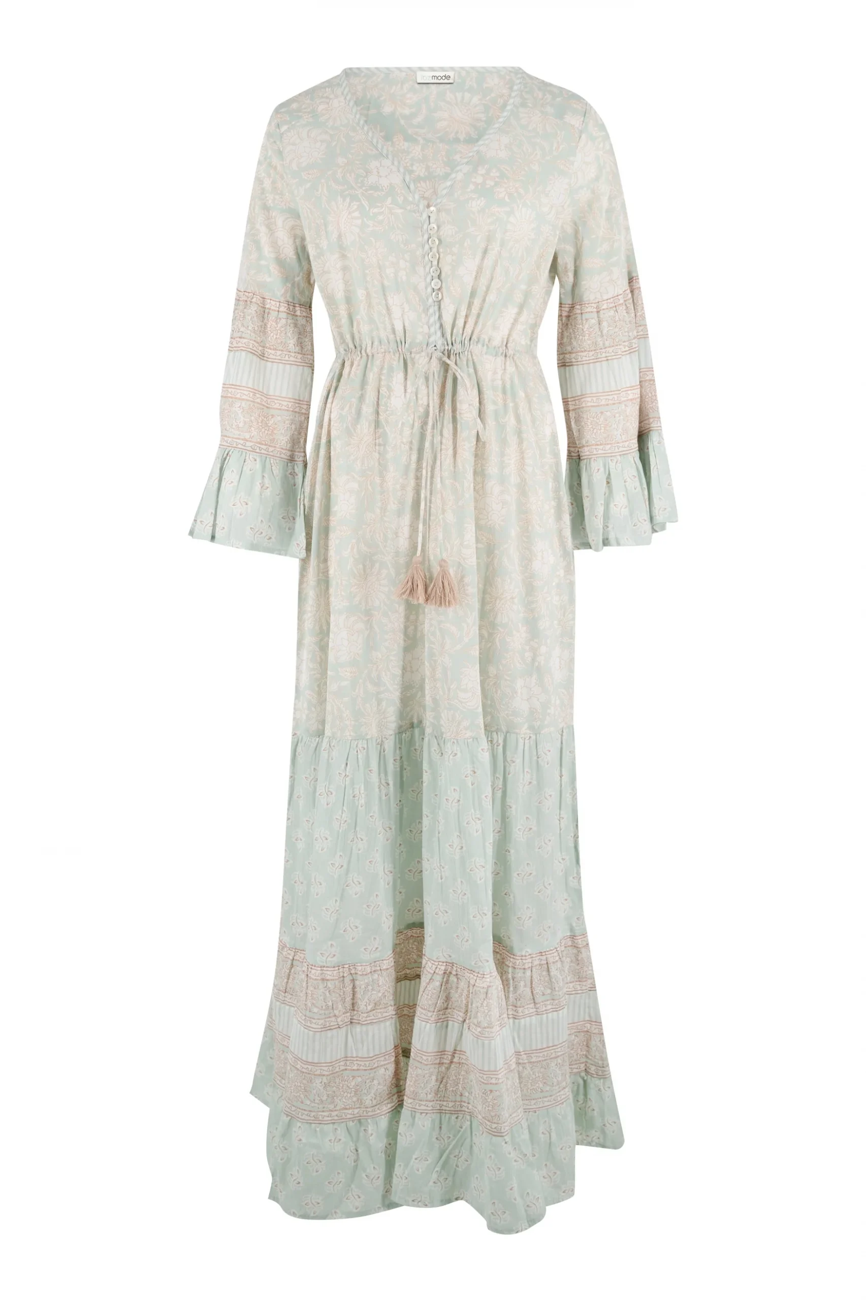 Met de Dress Jesenia Mint van ibzmode ben je klaar voor elke summer getaway. Heeft een v-hals, sluit met knoopjes bij de buste, flair mouwen, te verstellen in de taille Draag het met je favoriete accessoires voor een echte brands of Ibiza-look. Shop nu bij ibizamode en straal deze zomer in stijl.