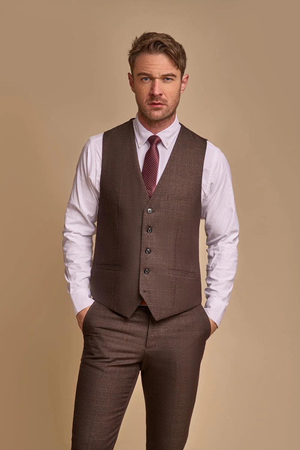 Liever het pak in 1 kleur? De Elwood & Caridi Brown zijn ook verkrijgbaar als driedelige pakken!