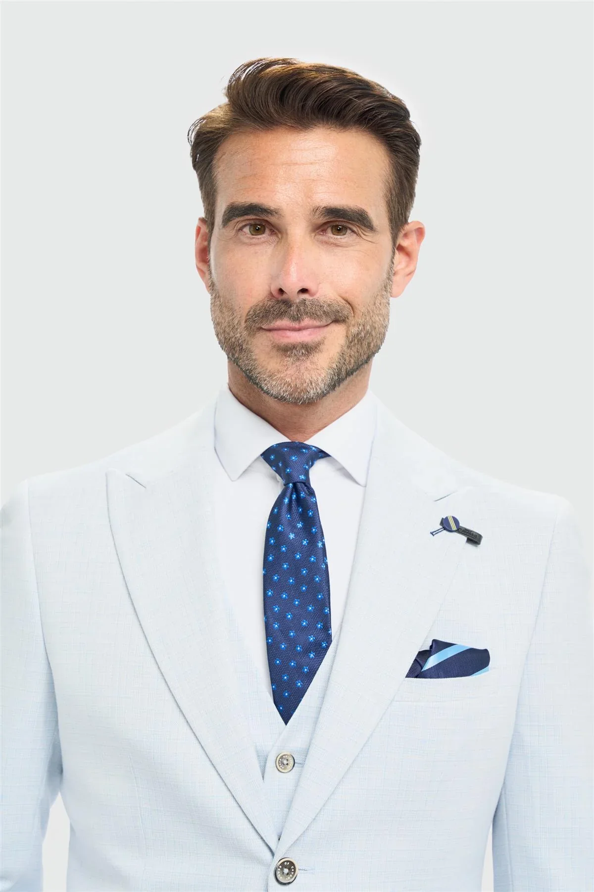 Kies het Cavani Tropez Sky pak als je iets zoekt dat meer is dan alleen kleding. Dit is geen confectie. Dit is karakter. Voeg het toe aan je garderobe en geef betekenis aan je momenten. Of je nu een ja-woord begeleidt, een toast uitbrengt of gewoon besluit dat het tijd is om gezien te worden: dit pak is er voor jou.