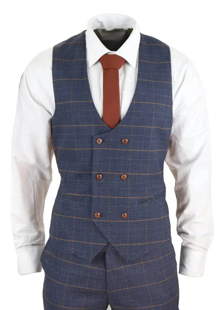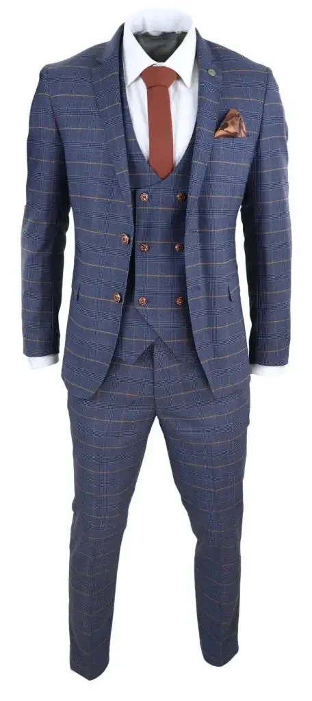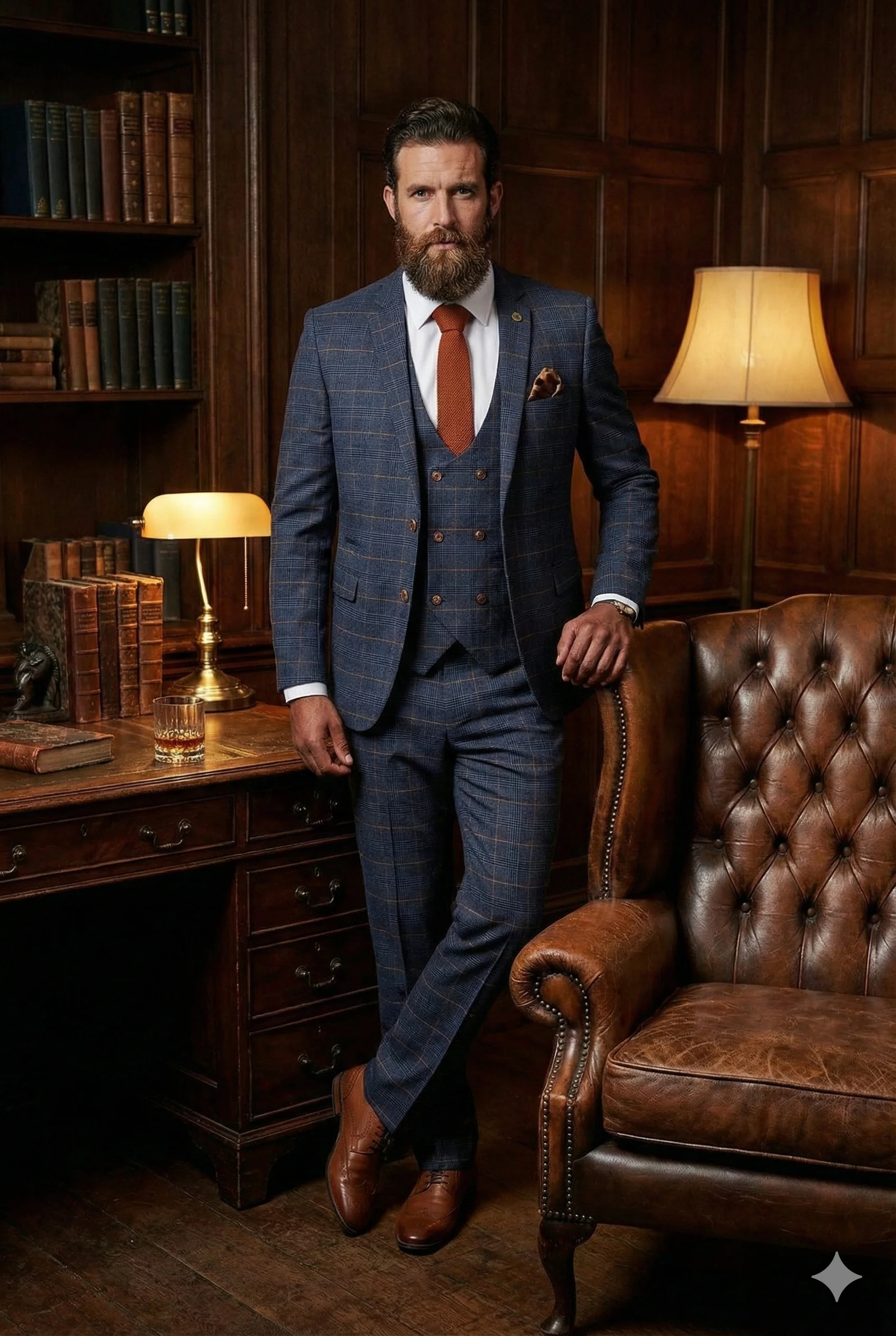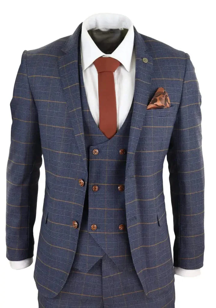 Waarom kiezen voor het ruitpatroon bij het driedelig kostuum Jenson marine blue?