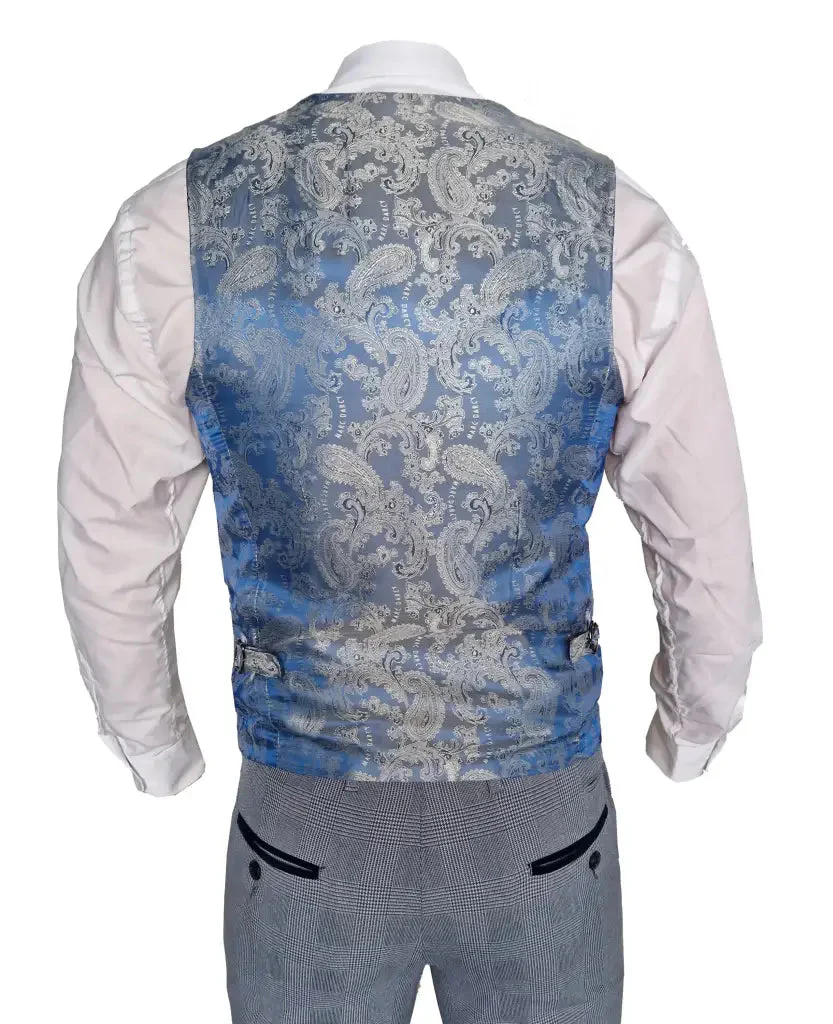 Bekijk ook het tweedelige Lichtblauwe blauw heren kostuum geruit. Hier kies je voor als een gilet voor jou overbodig is.