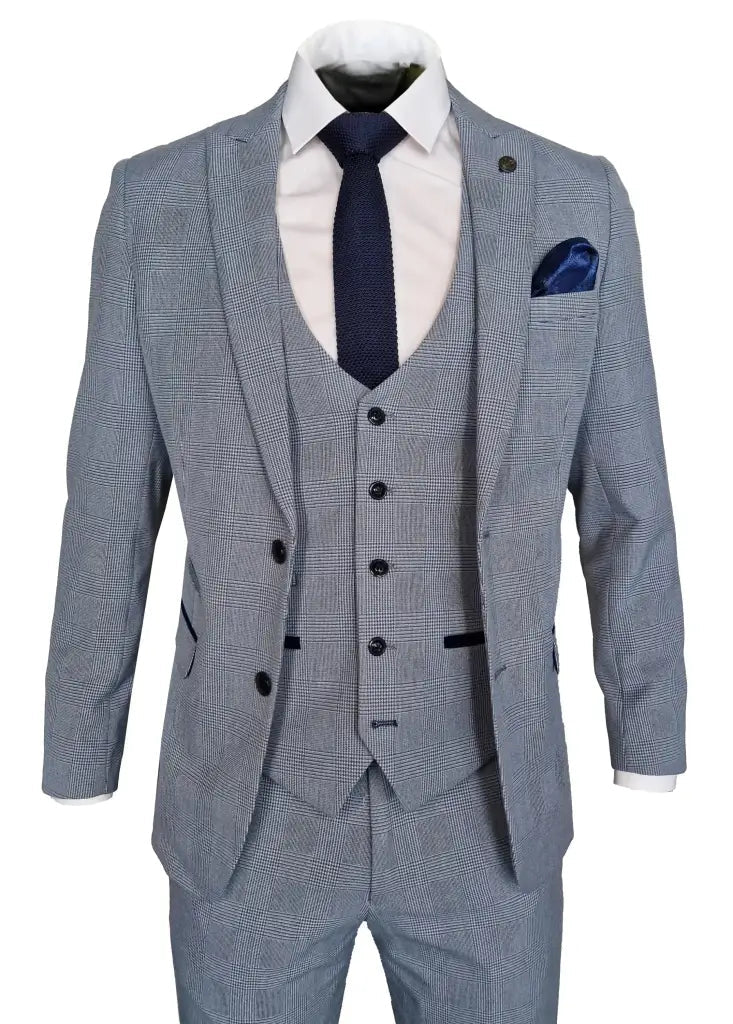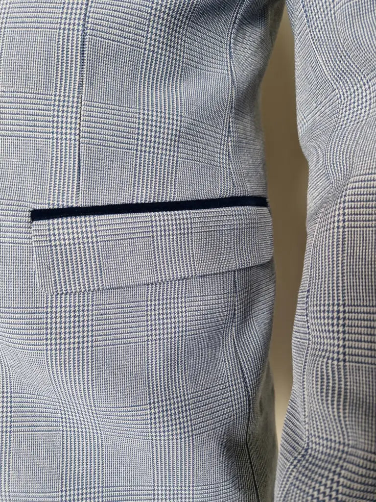Driedelig Lichtblauw Geruit Pak Kopen?