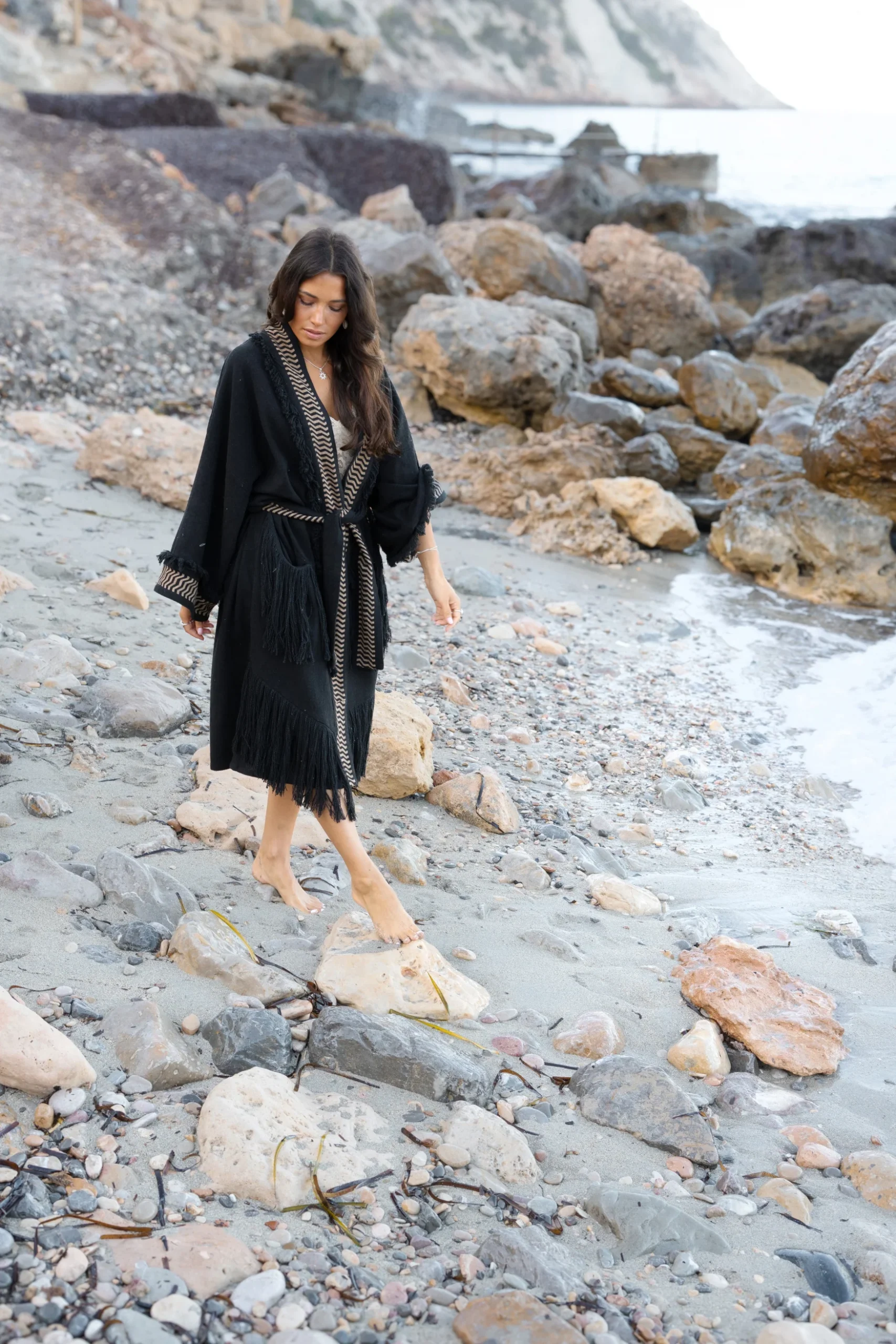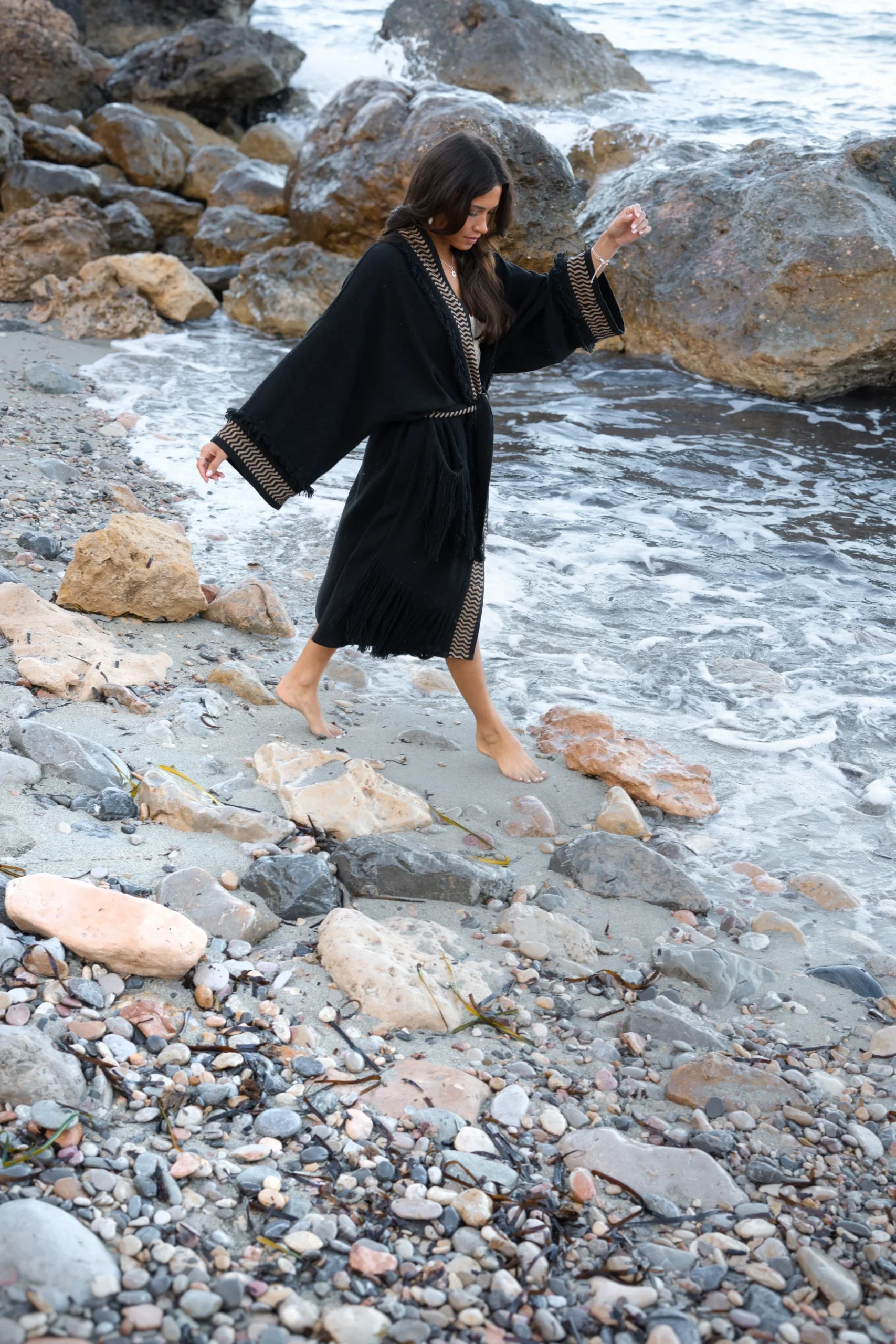 Op zoek naar een item met bohemian flair? Dan is de Fringe Kimono Esthetica Black van ibzmode jouw match. Fringe kimono bewerkt met franjes, sluit door middel van een ceintuur. De Bohemian Fringe collectie Draag het met je favoriete accessoires voor een echte brands of Ibiza-look. Voeg deze must-have toe aan je zomergarderobe.
