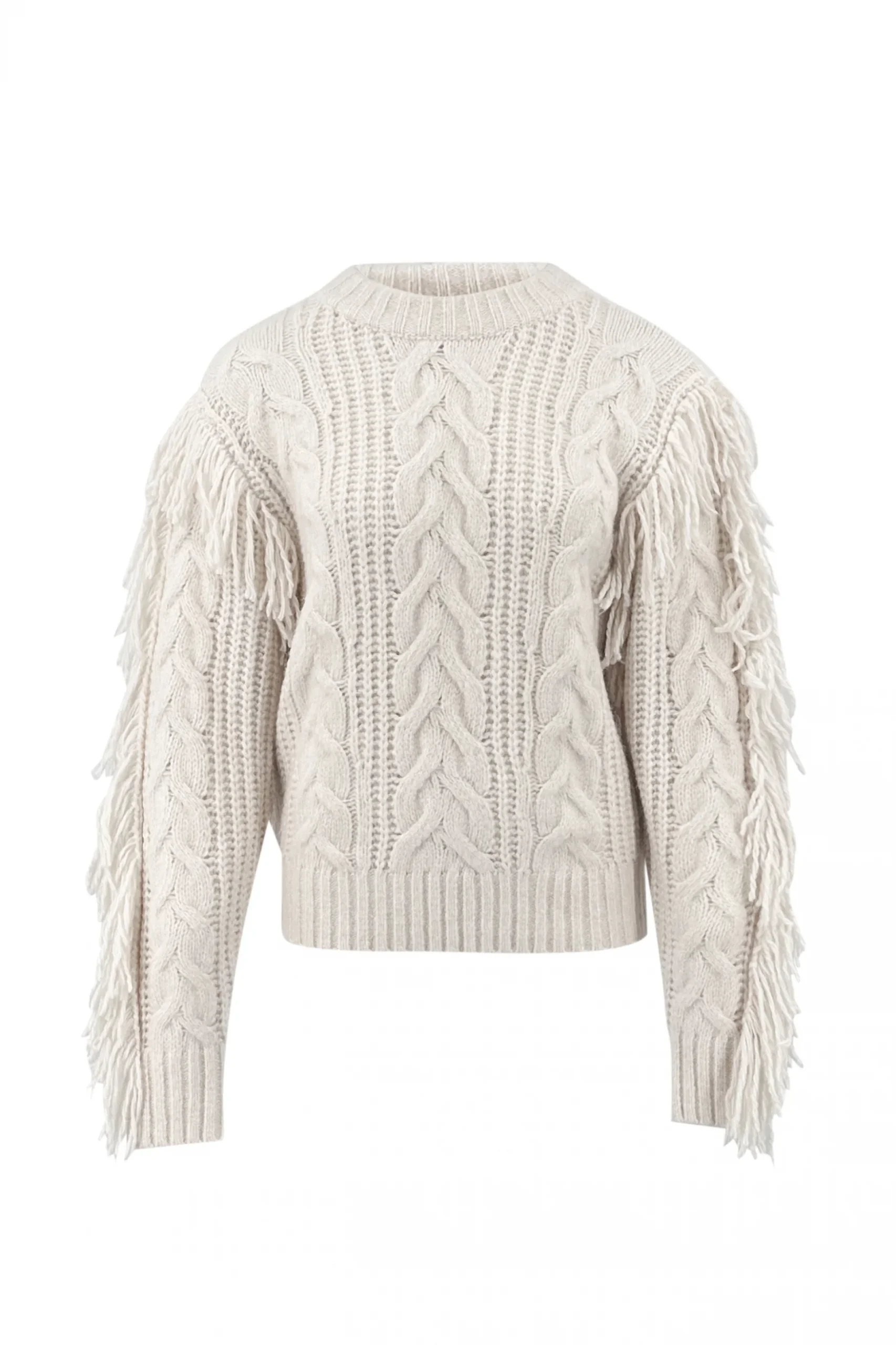 Deze Fringe Pullover Dago Beige van ibzmode in het beige ademt Ibiza vibes. Kabeltrui met een hoge hals, bewerkt met franjes Draag het met je favoriete accessoires voor een echte brands of Ibiza-look. Nu verkrijgbaar bij ibizamode – ontdek meer op Brands of Ibiza.