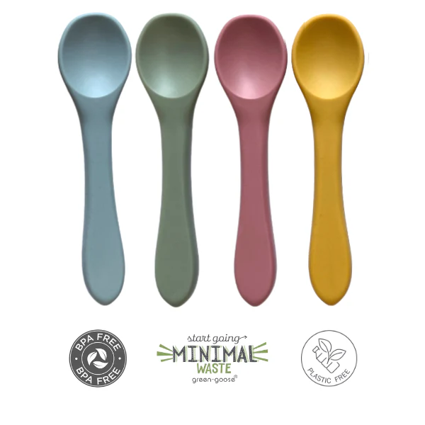 Jouw eerste eigen green-goose Babylepel Set: 4 Stuks, gemaakt van duurzaam siliconen