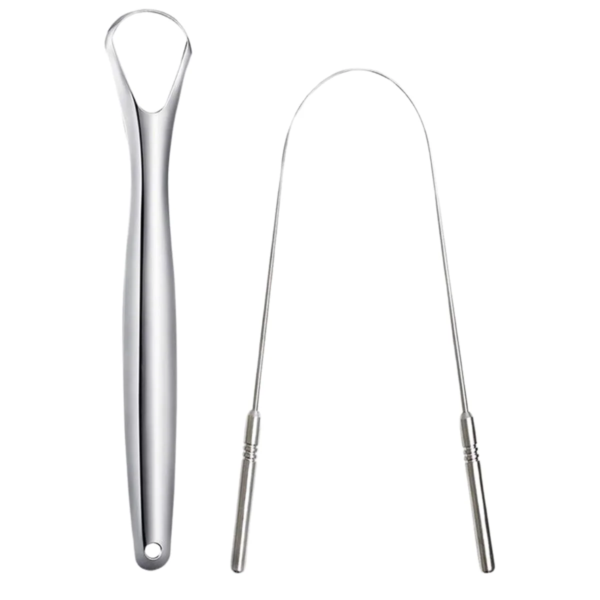 Deze tongschrapers zijn gemaakt van hoogwaardig roestvrij staal, waardoor ze stevig, herbruikbaar en volledig roestbestendig zijn. Roestvrij staal is niet-poreus en voorkomt de ophoping van bacteriën, wat zorgt voor een optimale mondhygiëne.