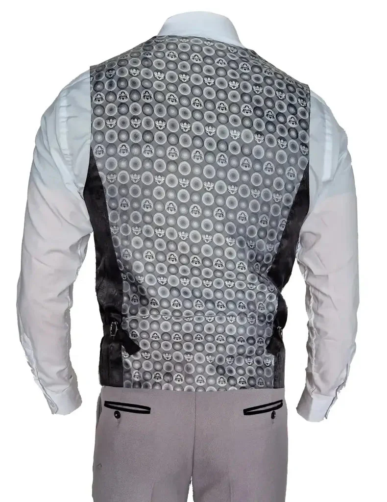 Ons 3-delige grijze pak van Marc Darcy is de perfecte keuze voor de modebewuste man die stijlvol wil voor de dag komen. Het pak heeft een grijze kleur die mooi aangevuld is met zwarte details die zorgen voor een subtiele, maar toch opvallende look. De colbert is mooi afgewerkt met grijze en zwarte details, wat een extra touch van luxe geeft. Ook de gilet heeft veel grijze en zwarte details waaronder een patroon op de rug, wat het geheel een harmonieuze uitstraling geeft. Dit pak is gemaakt van hoogwaardige stoffen en is erg comfortabel om te dragen.