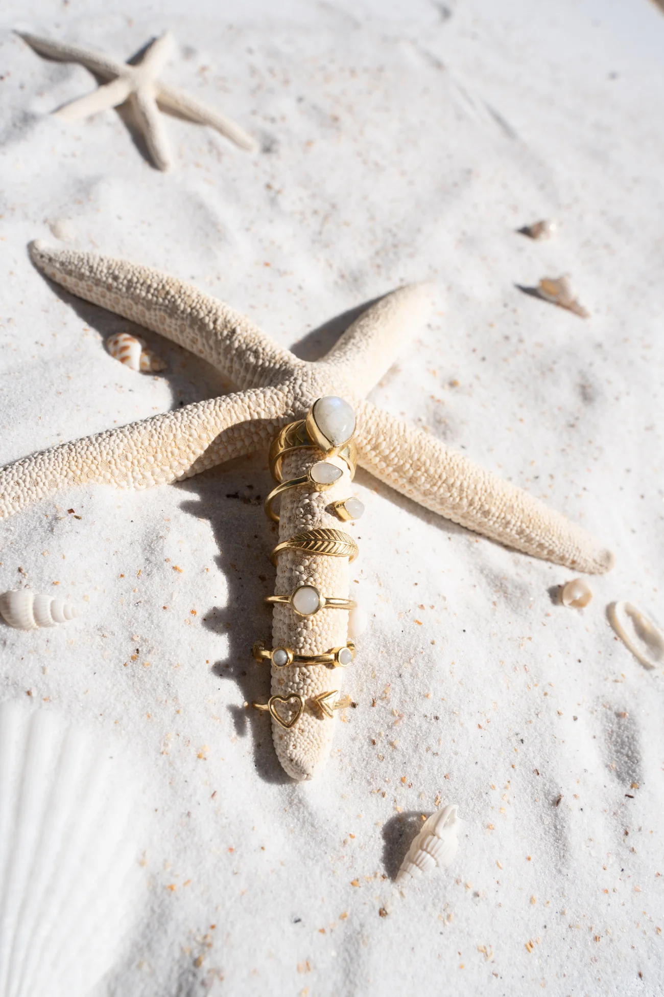 Dit sieraad heeft een stevige basis van messing en is afgewerkt met een laagje echt goud. De combinatie zorgt voor een warme glans en een luxe uitstraling. Draag met zorg – vermijd water, parfum en schoonmaakmiddelen – dan blijft je sieraad lang mooi.
