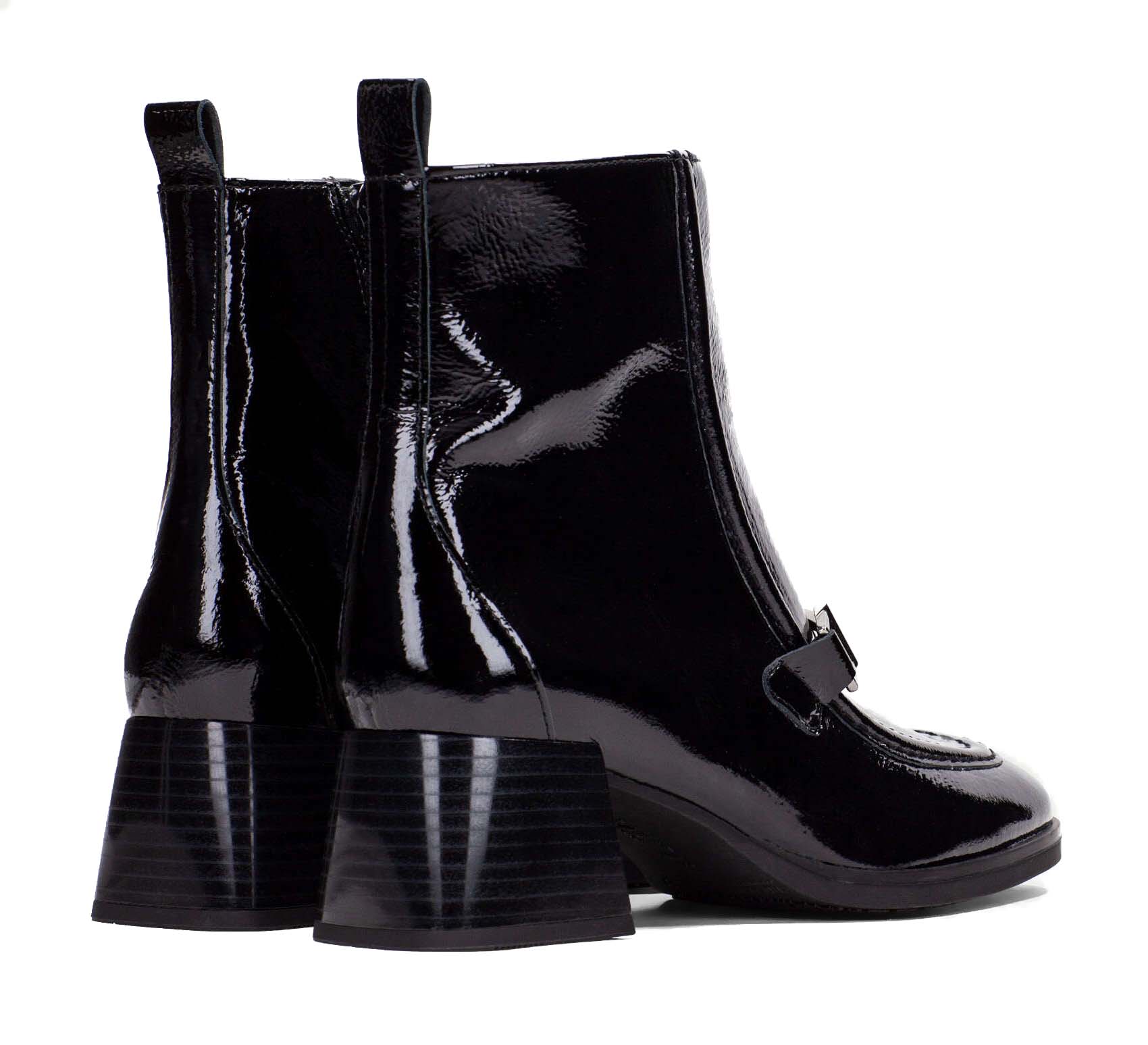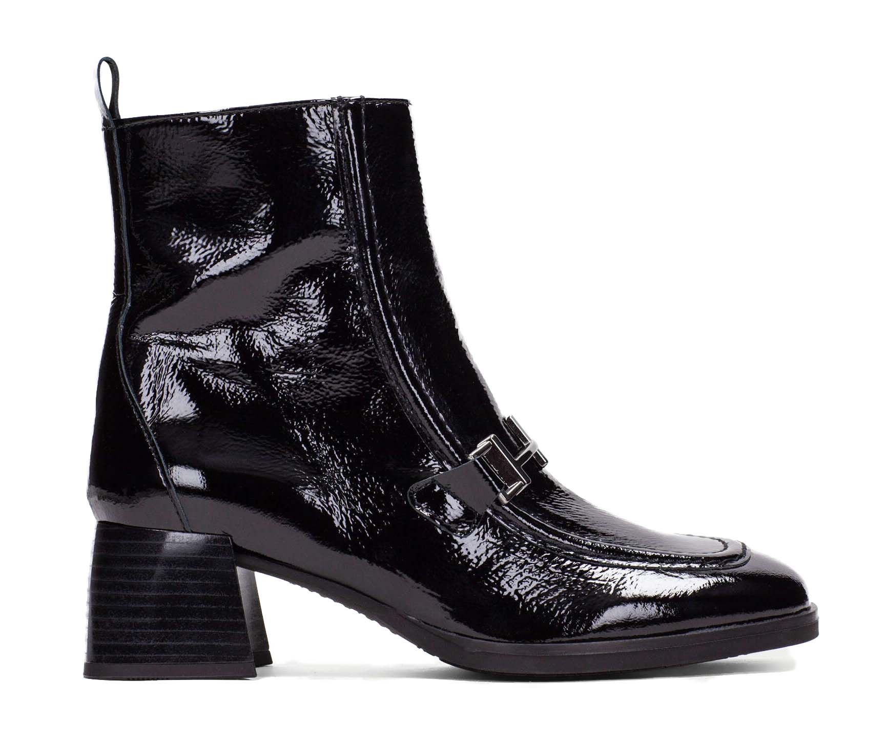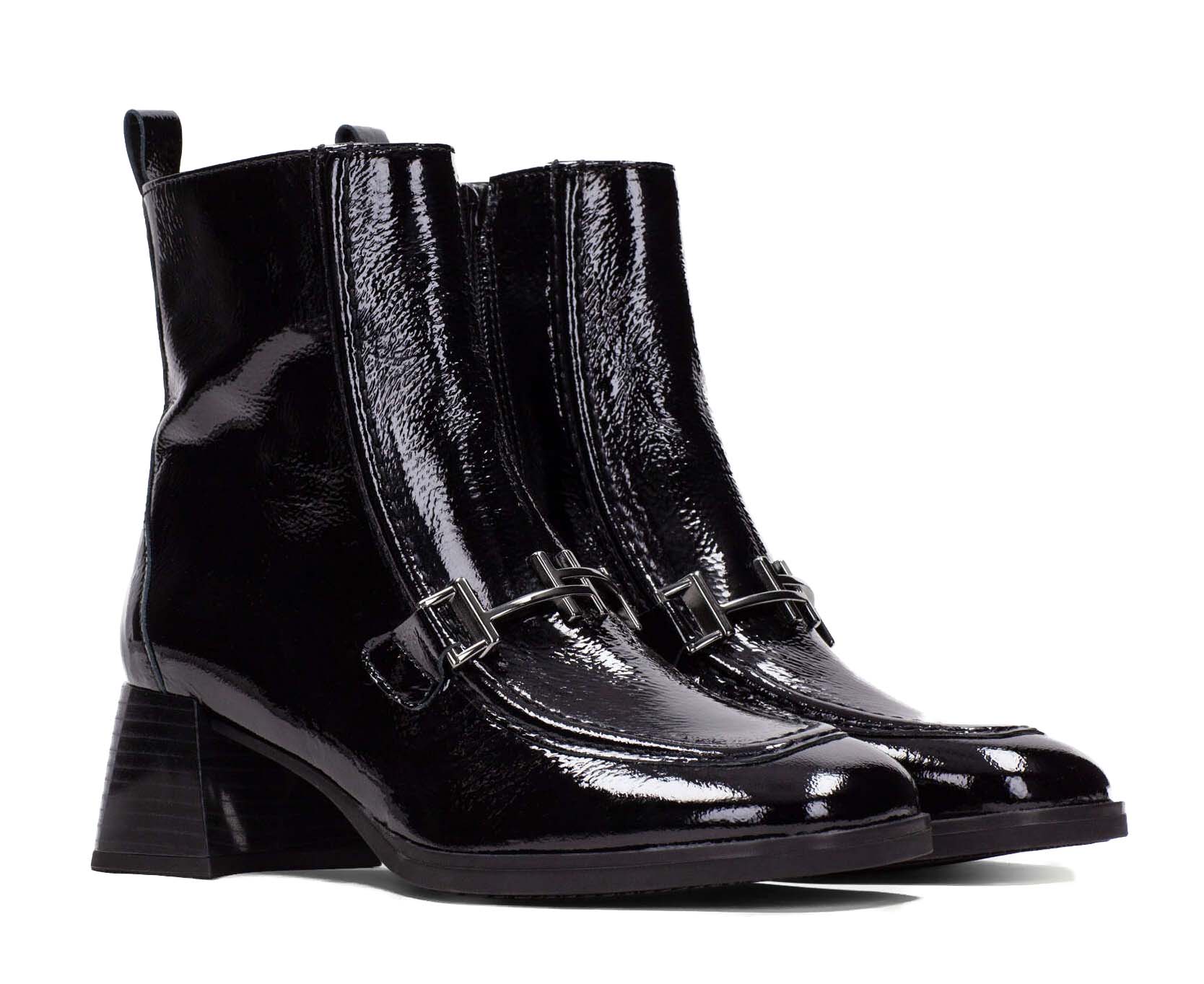 Het laarsje is gemaakt van hoogwaardig lakleer, wat zorgt voor een duurzaam en glanzend effect. Dankzij de comfortabele pasvorm en flexibele zool kun je de hele dag genieten van dit modieuze laarsje, zonder in te boeten op draagcomfort. Of je het nu combineert met een nette broek of een jurk, dit laarsje maakt je outfit compleet.