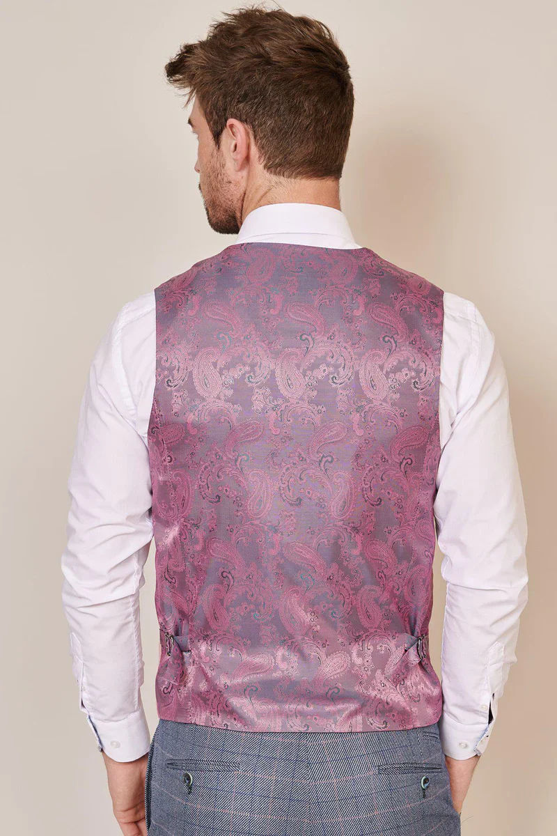 Voeg een vleugje verfijning toe aan je formele look met ons lichtroze gilet. Dit veelzijdige kledingstuk is perfect voor het mixen en matchen met onze 3-delige en 2-delige pakken, waardoor je eindeloze stijlopties krijgt.