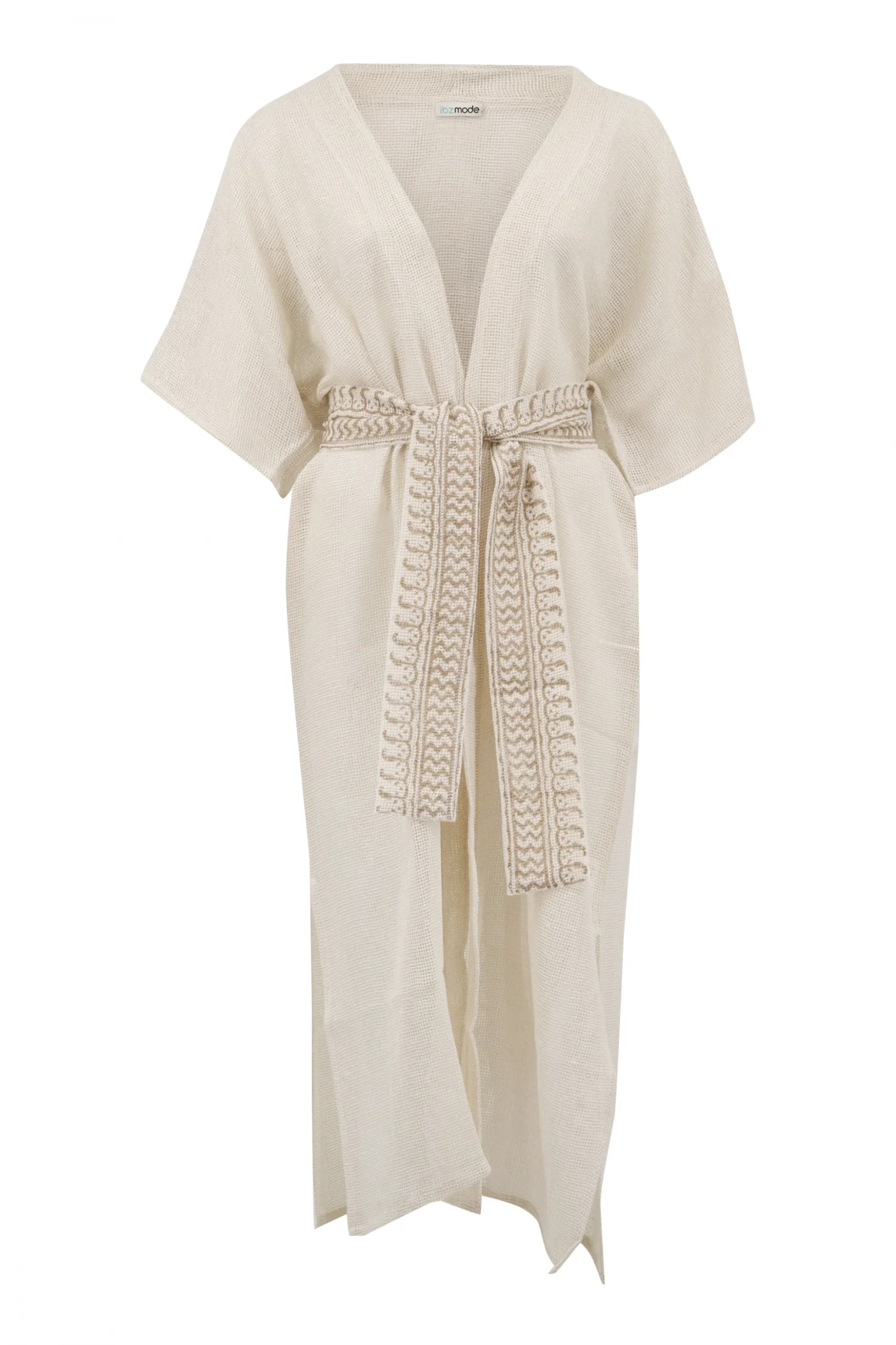 Met de Kimono Deya Plain Ivory van ibzmode ben je klaar voor elke summer getaway. Heeft een los ceintuur waarmee de kimono te strikken is, gemaakt van een fijne katoen stof Draag het met je favoriete accessoires voor een echte brands of Ibiza-look. Nu verkrijgbaar bij ibizamode – ontdek meer op Brands of Ibiza.