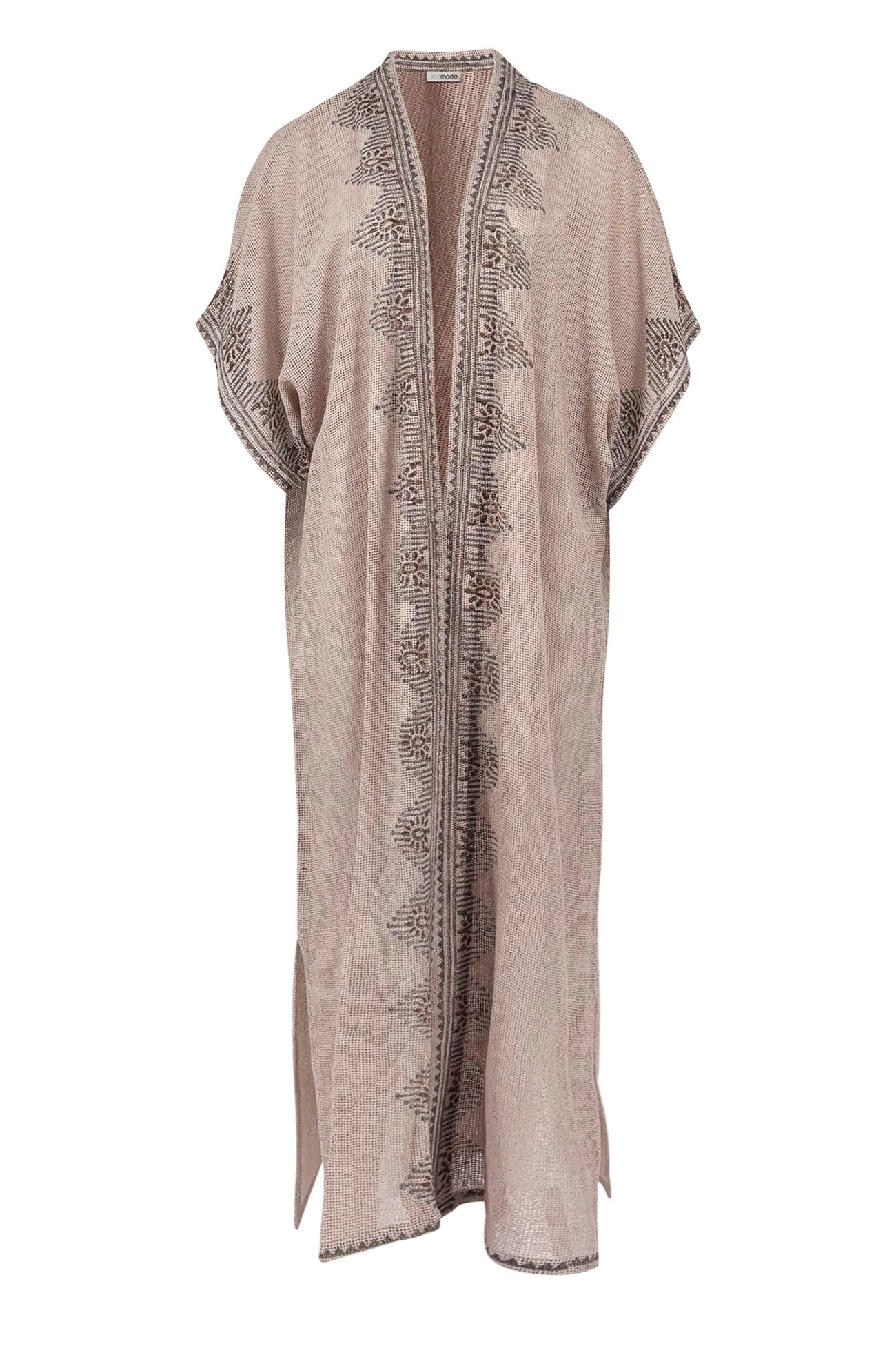 De kimono valt open en beweegt soepel met je mee. Daardoor ontstaat bij elke stap een mooie flow. De kimono heeft een subtiel stempelwerk met een rustige print bij de uiteindes van de mauw en bij de opening van de kimono. Zo krijgt je resort look een handgemaakt accent, zonder dat het te druk oogt.