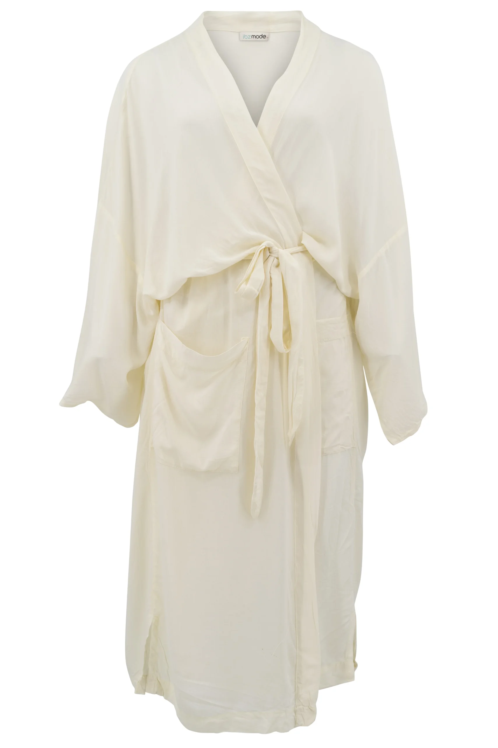Creëer jouw ultieme zomerse look met de Kimono Jane Ecru in de kleur ecru. Te strikken in de taille, heeft wijde mouwen en splitten aan de zijkanten, steekzakken, perfect voor Perfect te combineren met slippers, een basic top of een lichte blouse. Nu verkrijgbaar bij ibizamode – ontdek meer op Brands of Ibiza.